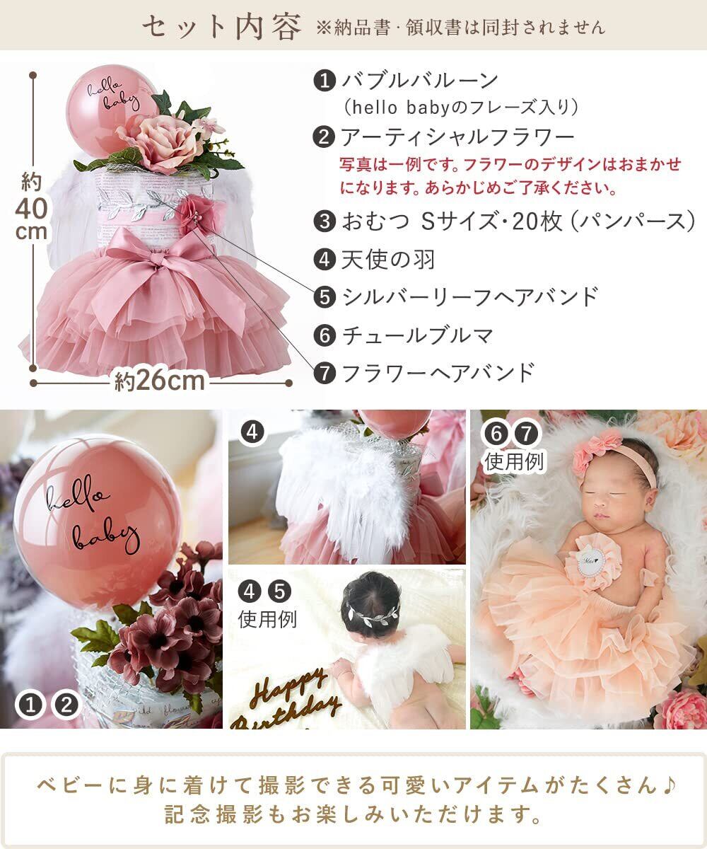 regalo bel おむつケーキ 女の子 出産祝い おしゃれ かわいい ナチュラル ヘアバンド ベビーシャワー ベビーギフト チュチュスカート (モーヴ2段, パンパースS)