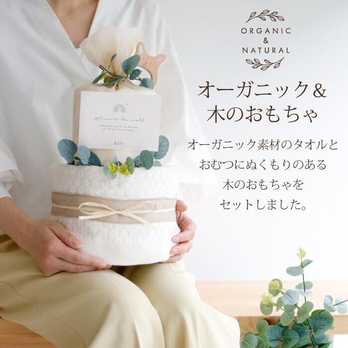 【2022最新】おむつケーキ 男の子 女の子 出産祝い オーガニック ギフト (ナチュラルムーニー ベージュ)