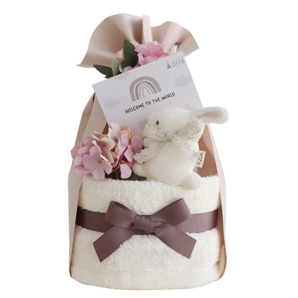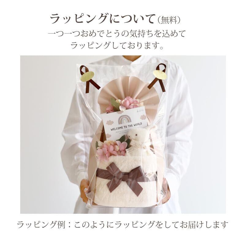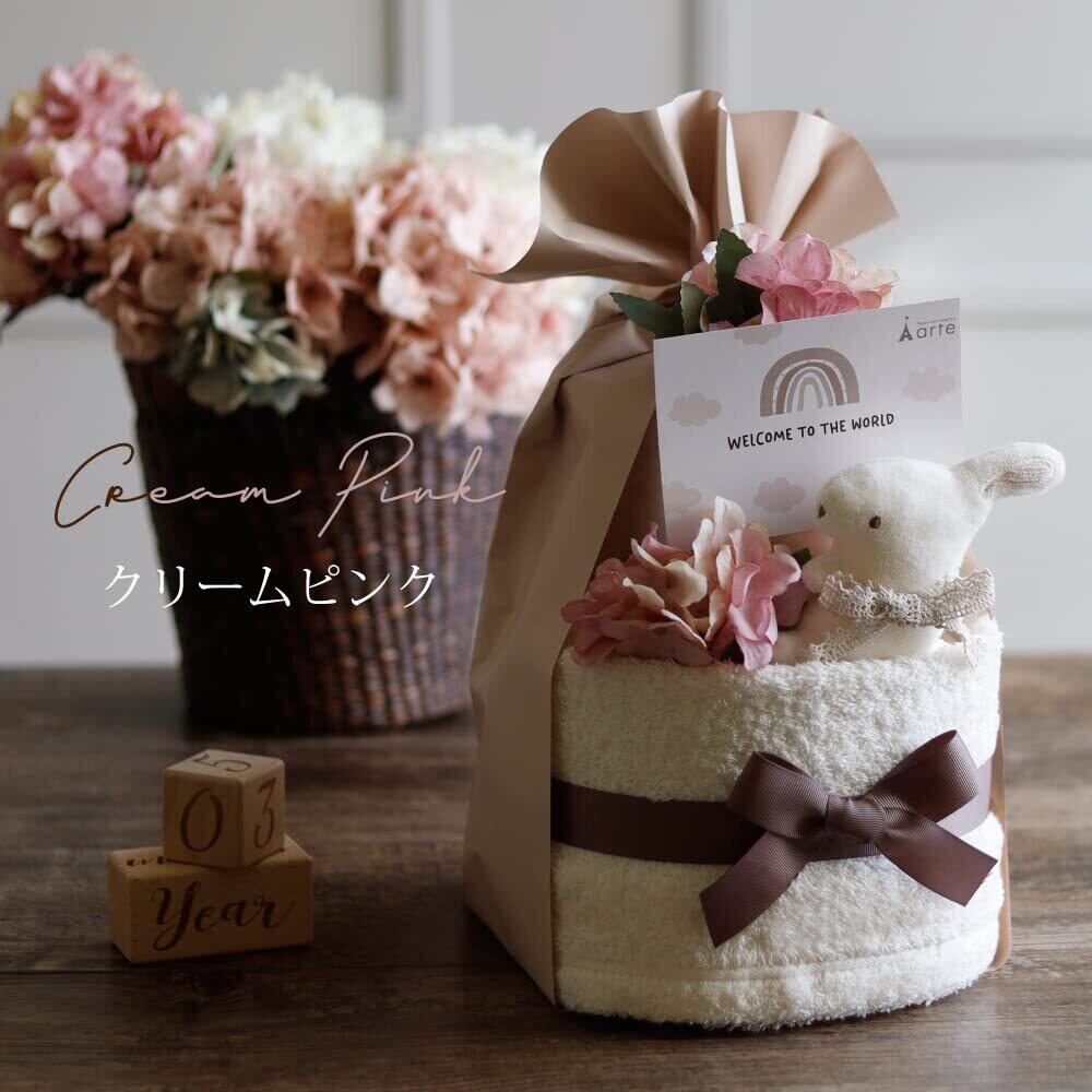 おむつケーキ 出産祝い くすみカラー オーガニック 日本製 女の子 ベビーギフト 100日 誕生日 春夏秋冬 ナチュラル おしゃれ フラワー 敏感肌 アトピー 安心 1歳 ハーフバースデー[ベビーアニマル オーガニック おむつケーキ] (クリームピンク)