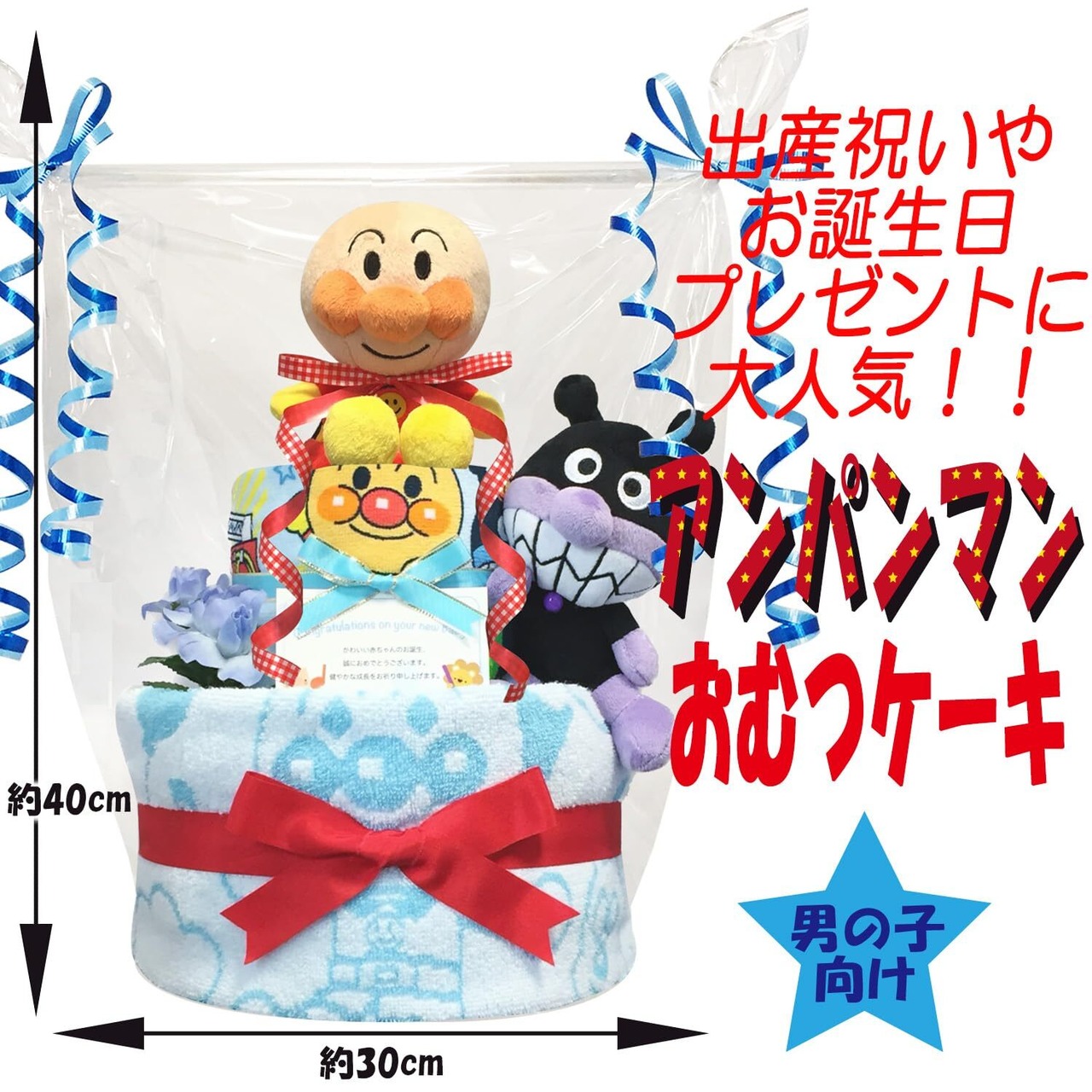 KanonBabys おむつケーキ 男の子向け アンパンマン バイキンマン 2段 パンパースS22枚