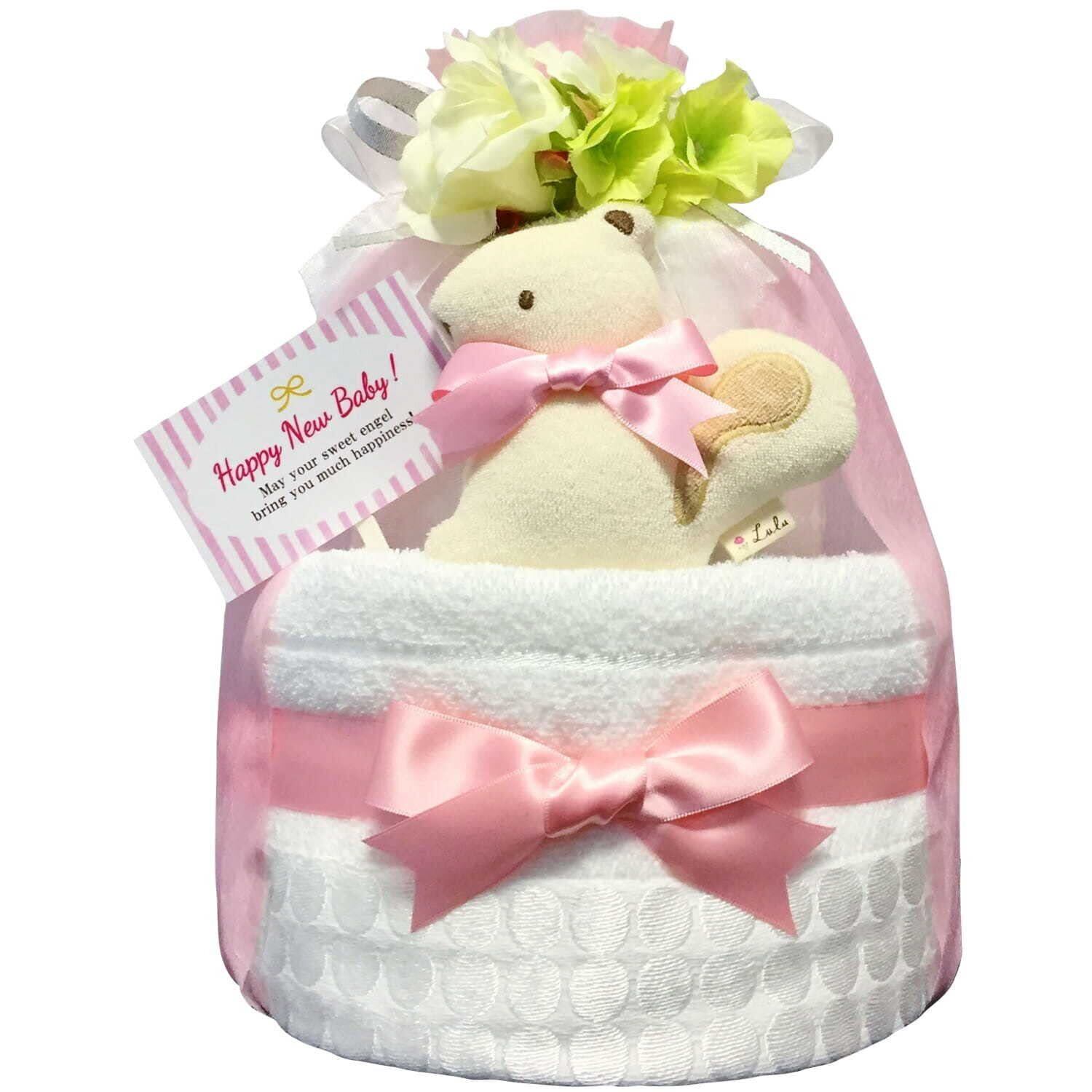 KanonBabys おむつケーキ 女の子 今治 オーガニック 出産祝い 2段 Sサイズ 2101