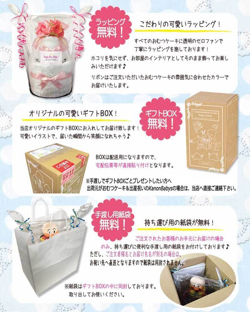 【お祝い先へお届け】出産祝いなどで、お祝い先へお届けに喜ばれるお祝いギフトです。オムツケーキ専用のギフトボックスに包装し、祝い先へお届けしますとサプライズ間違いなし!ご注文者様とお届け先名が同じ場合は、ギフトボックスからオムツケーキを取り出し、手渡し用の紙袋に入れてお持ちいただけます。