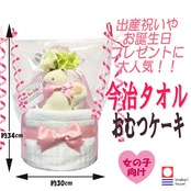 出産祝いに最適な今治タオルのおむつケーキ: 世界的に評価されている今治タオルを使ったおむつケーキは、赤ちゃんへの特別な出産祝いとして人気があります。やわらかさと吸水性に優れた今治タオルは、女の子の出産祝いにぴったりです。