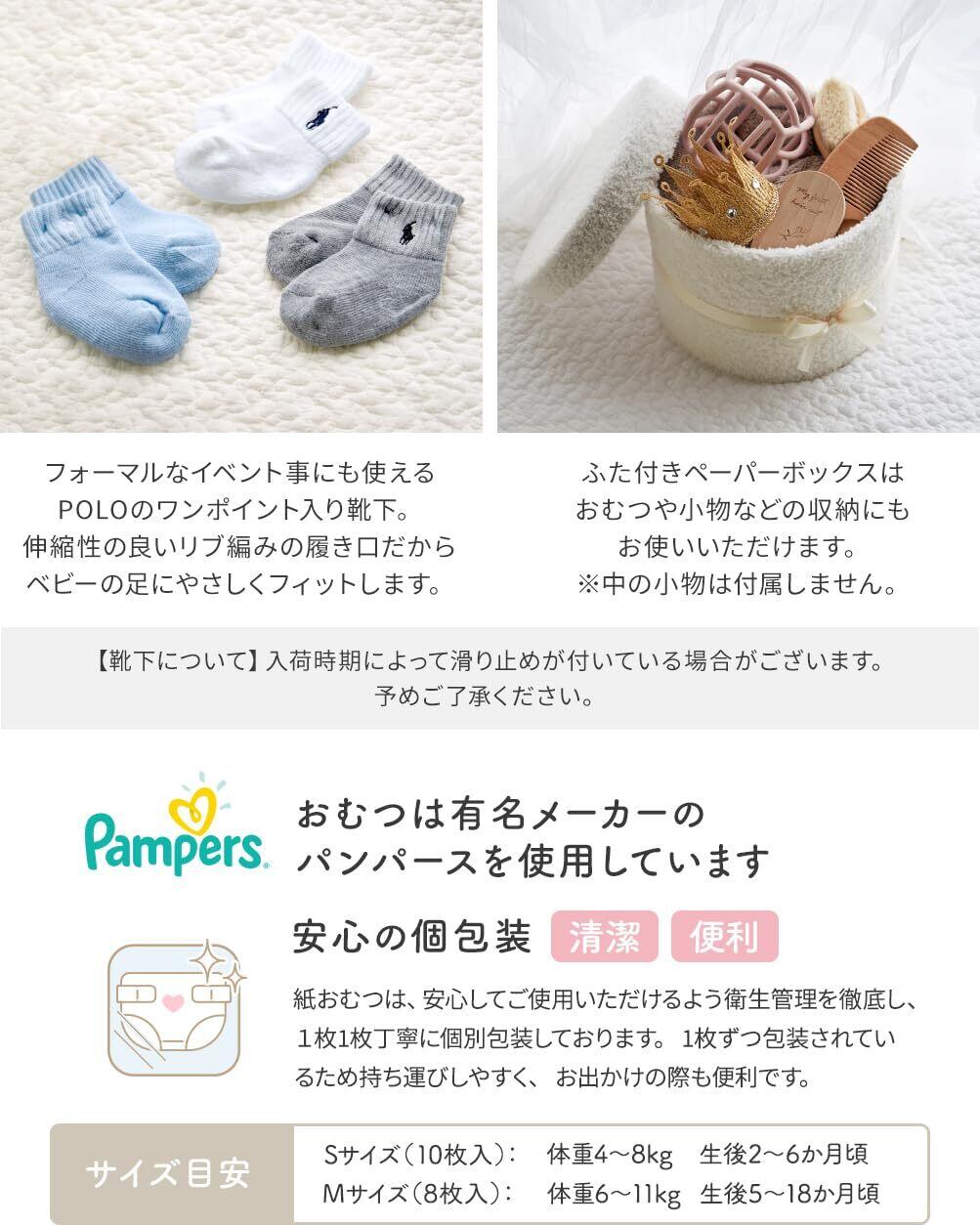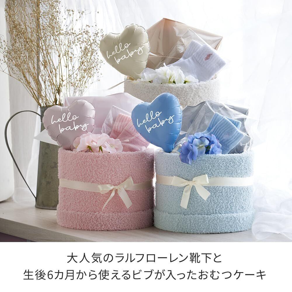 大人気のラルフローレンの靴下に2歳まで使えるシリコンビブの入った実用的なおむつケーキ。