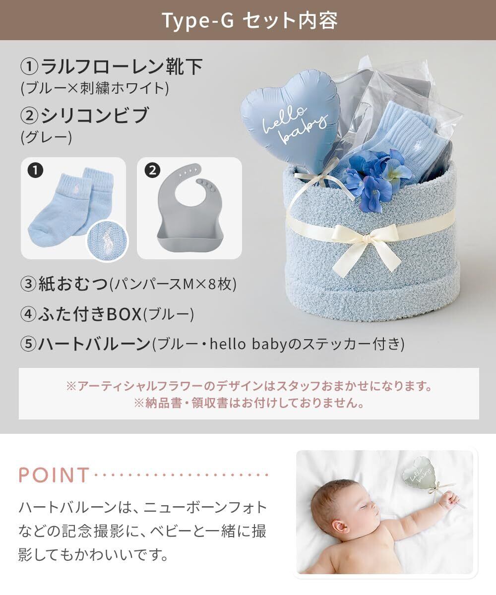 【新春セール】regalo bel おむつケーキ ラルフ 出産祝い 女の子 男の子 オムツケーキ かわいい ギフトセット ベビー ルル (Type-G, パンパースM)