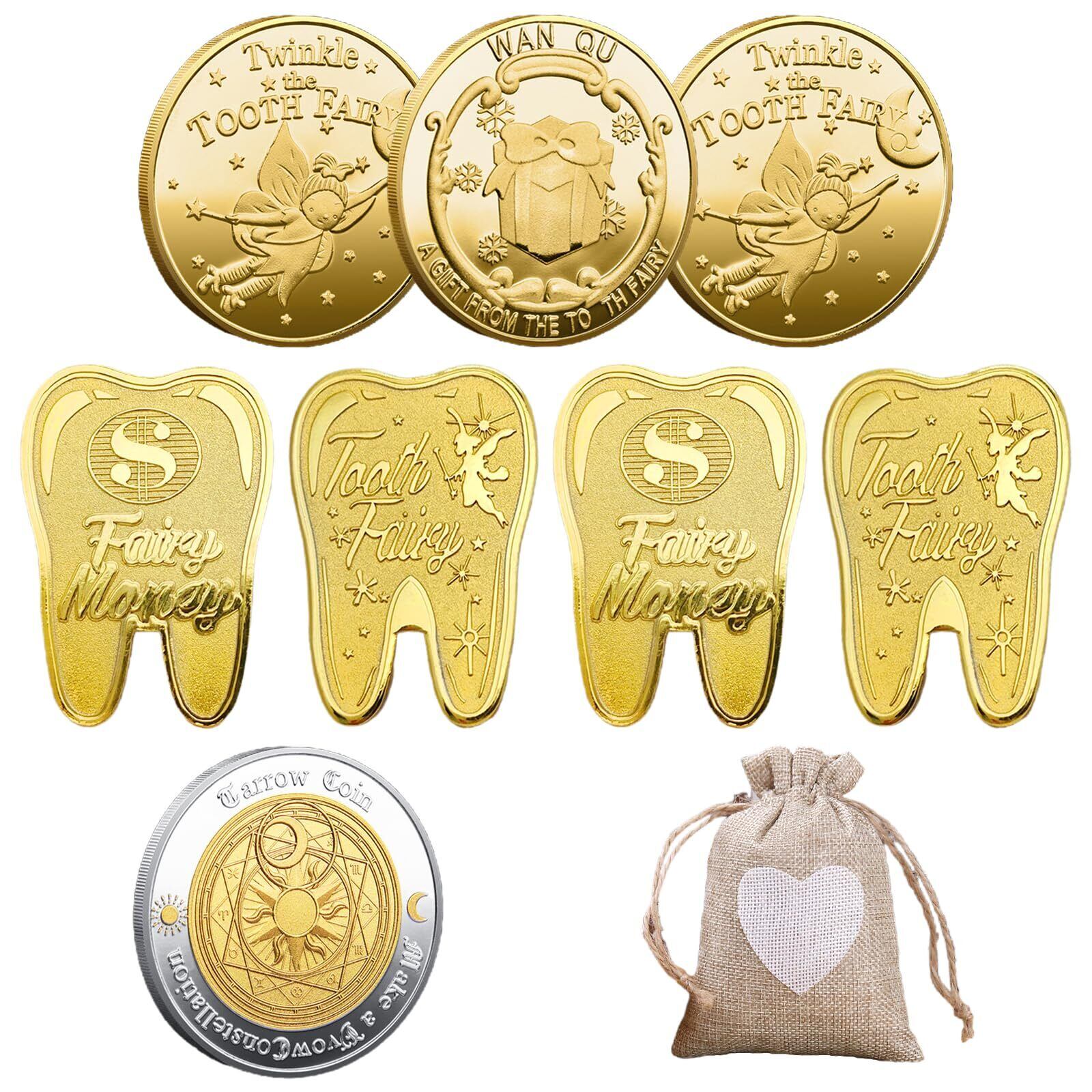 【特価商品】BTtime 歯の妖精コイント 8枚入り 褒美金貨記念コイン 歯と交換するコイン 乳歯生え変わり期 遊び道具 乳歯生え変わり記念 収納袋付き
