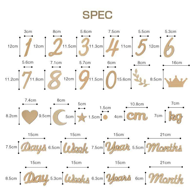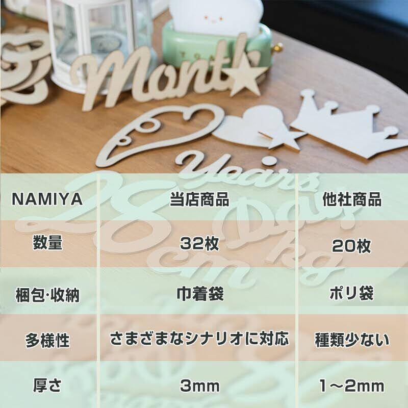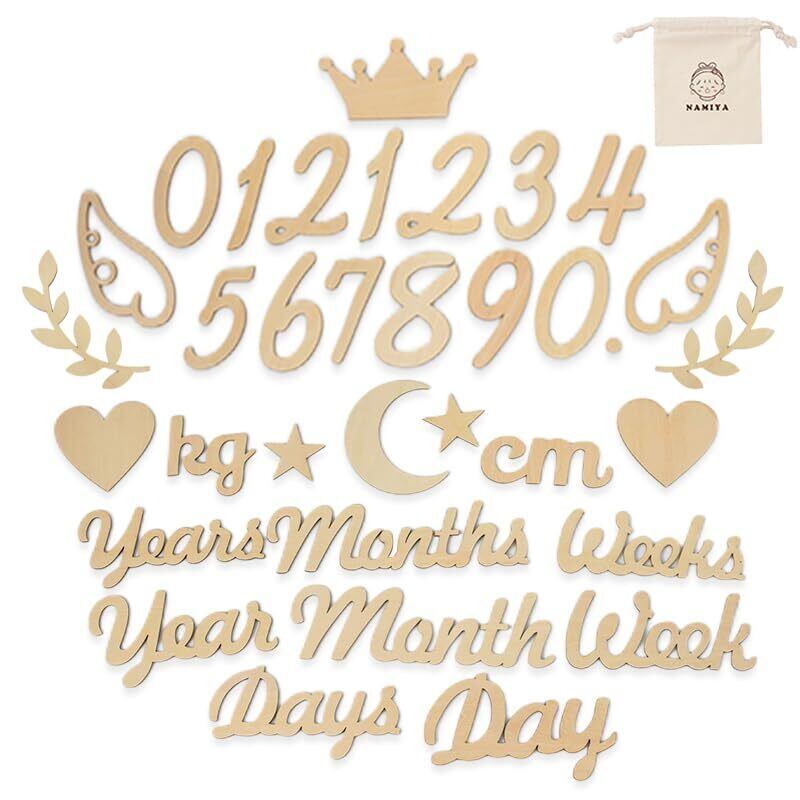 【特価商品】NAMIYA 月齢フォト 木製 レターバナー ベビーマンスリーカッド ニューボーンフォト 記念日フォト ウッドレター 月齢カード 撮影道具 記念写真 出産祝い 成長記録 (32枚 葉)