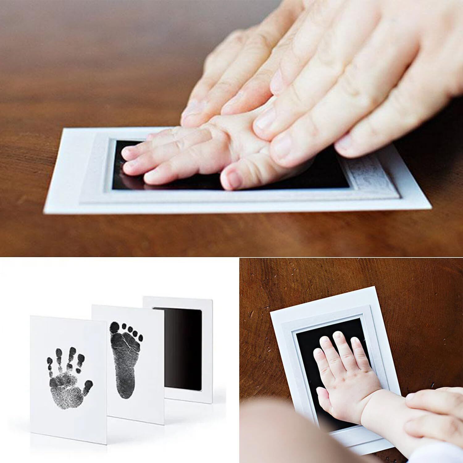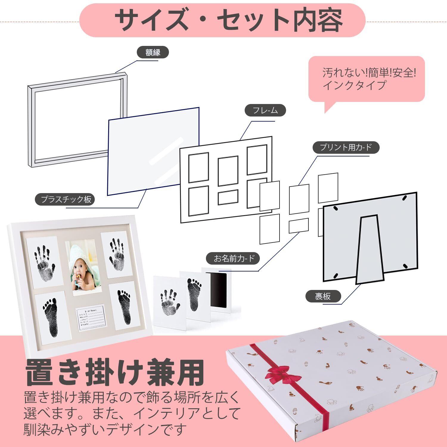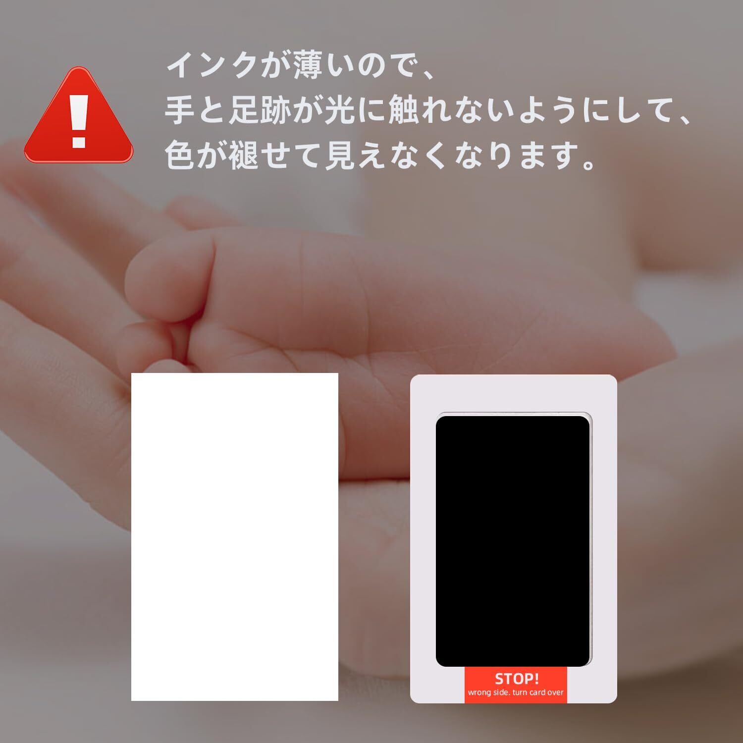 クリーンタッチのインクパッドで、お子さまの手や足に直接インクをつけずに手形や足形をとることができます。