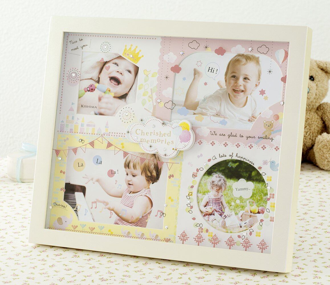 賑やかでかわいらしいイラストがふんだんに散りばめられた、楽しい多窓フォトフレームです