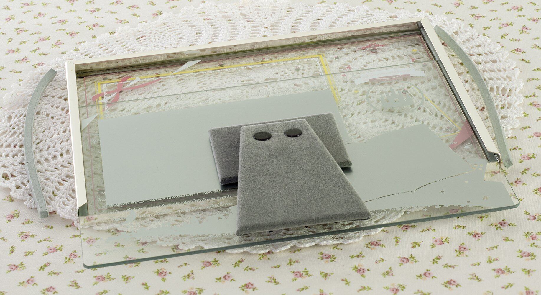■2層になったガラスをシルバープリントとキュートなイラストが彩り、たくさん散りばめられたラインストーンとガラスの重なりがキラキラ輝いているように見えます。