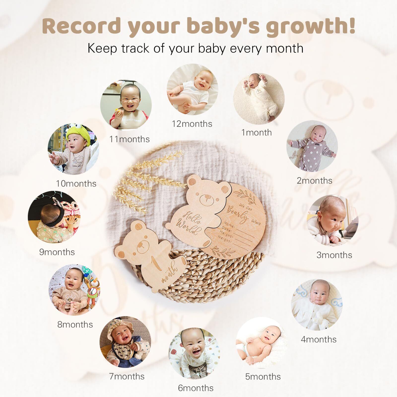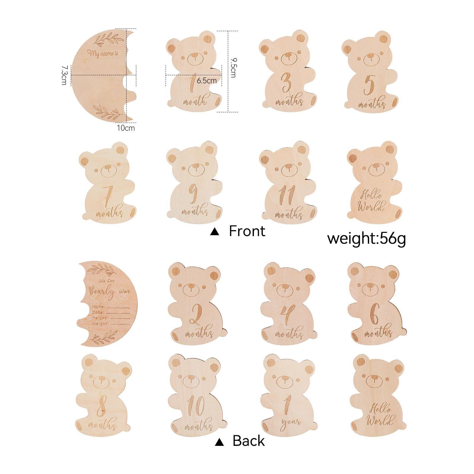 Promise Babe 月齢フォト ベビーマンスリーカード 8枚セット クマ形 ウッド 天然木材 ニューボーンフォト 写真道具 成長記録 新生児 赤ちゃん 出産祝い