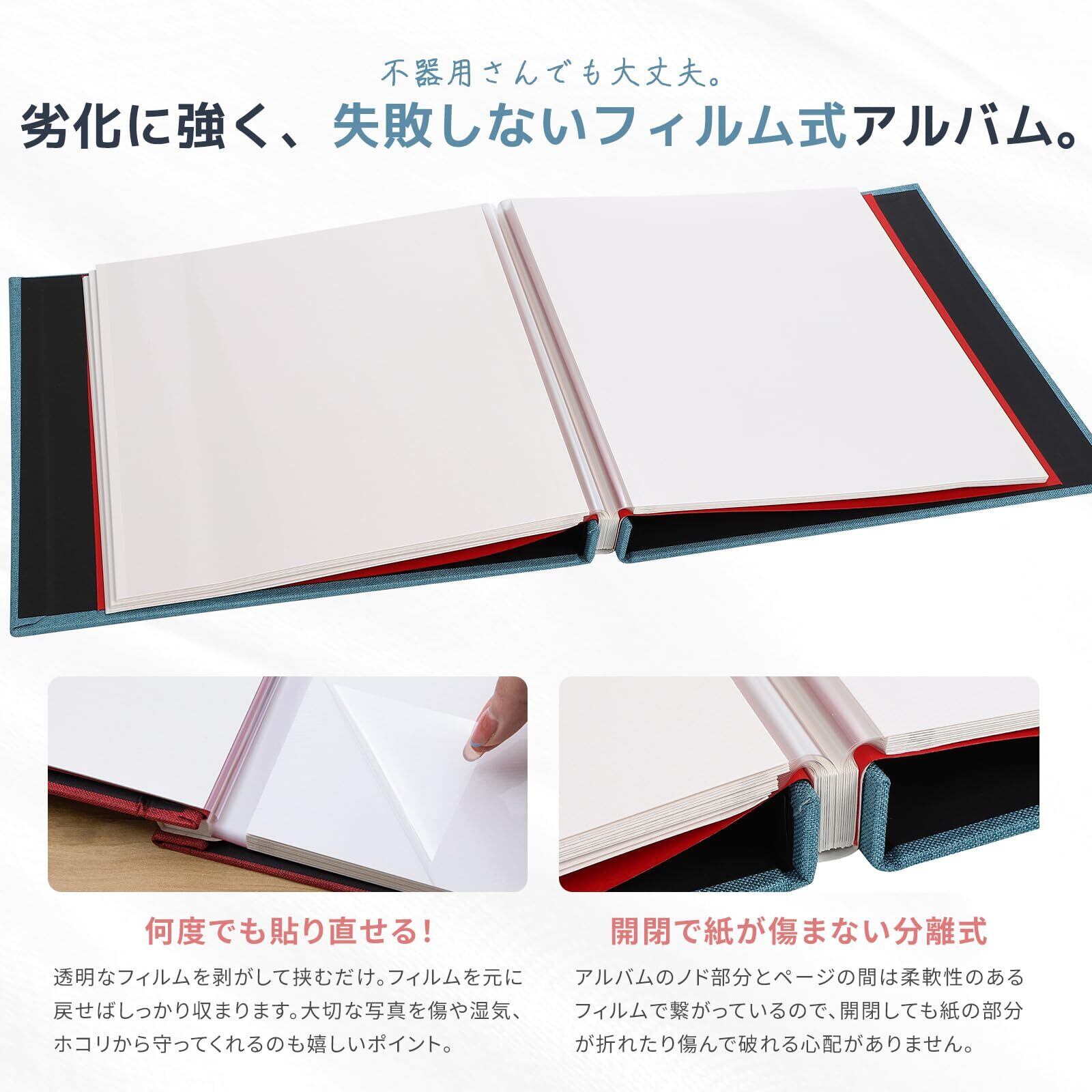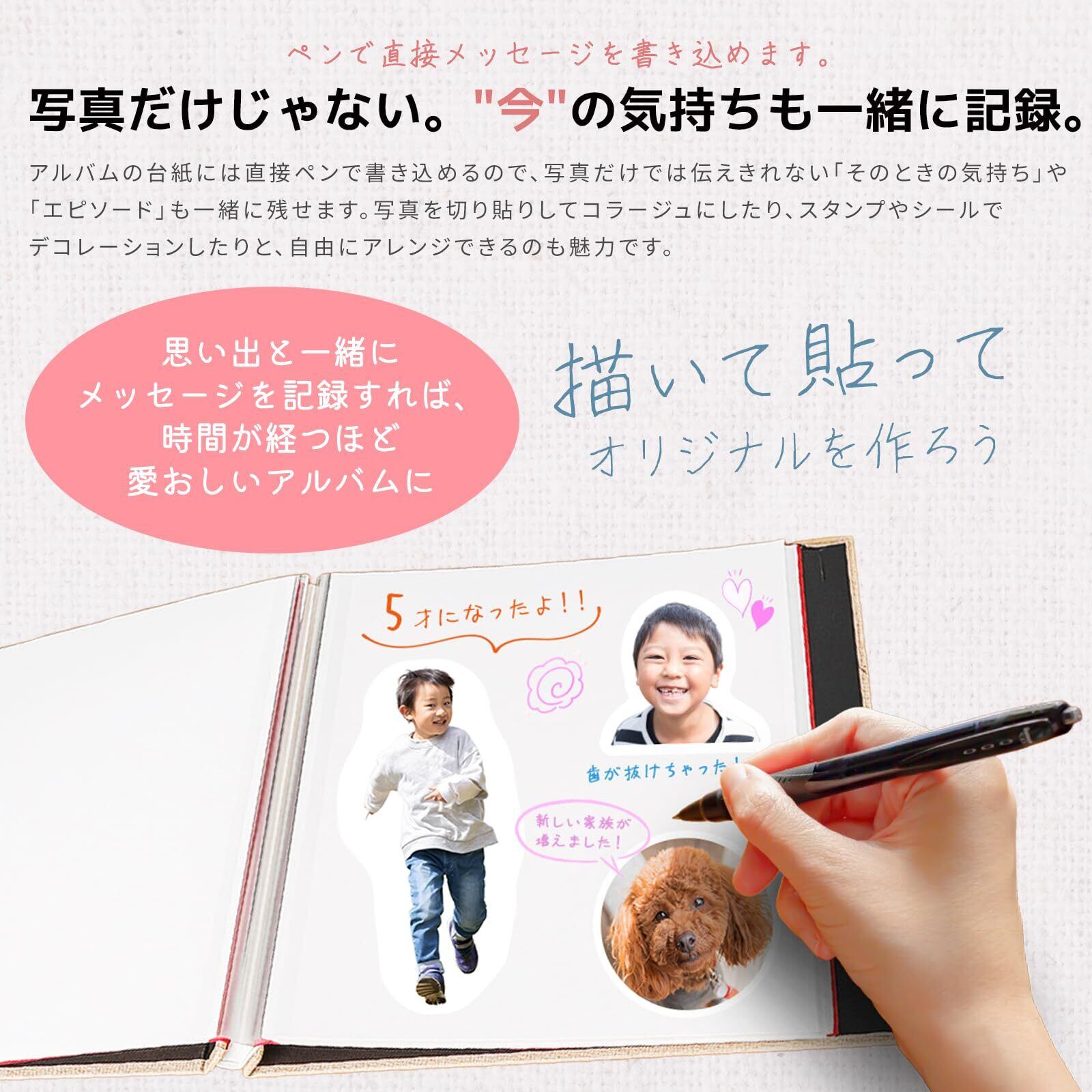 【自由に作れる構成】 フリー台紙を採用しており、写真のサイズやレイアウトを自由に選べます。結婚祝いなどのプレゼントにも適しており、オリジナリティあふれる贈り物が作れます。ファイル式でページの差し替えがしやすく、アルバムの拡張にも対応できます。