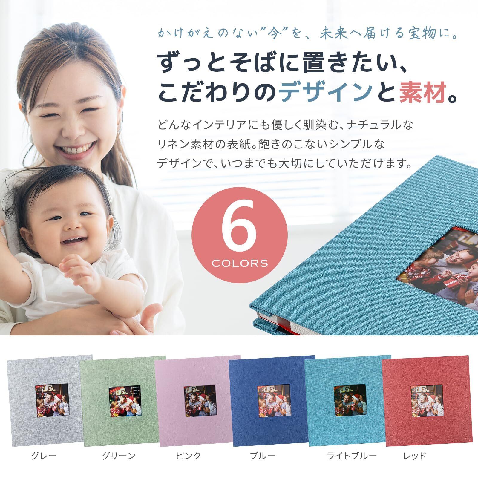 【商品詳細】 仕様:貼るタイプ/フリー台紙式 容量:大容量(約100〜200枚収納可能) 台紙枚数:20枚40ページ カラー:ライトブルー / レッド / ピンク / グリーン / グレー / ブルー サイズ:27cm×28cm×2.6cm 素材:表紙 リネン/中面 クラフト紙+台紙 対応用途:写真アルバム、エコー写真、スクラップブック、チェキ保存、結婚祝い、出産祝い、記念日など
