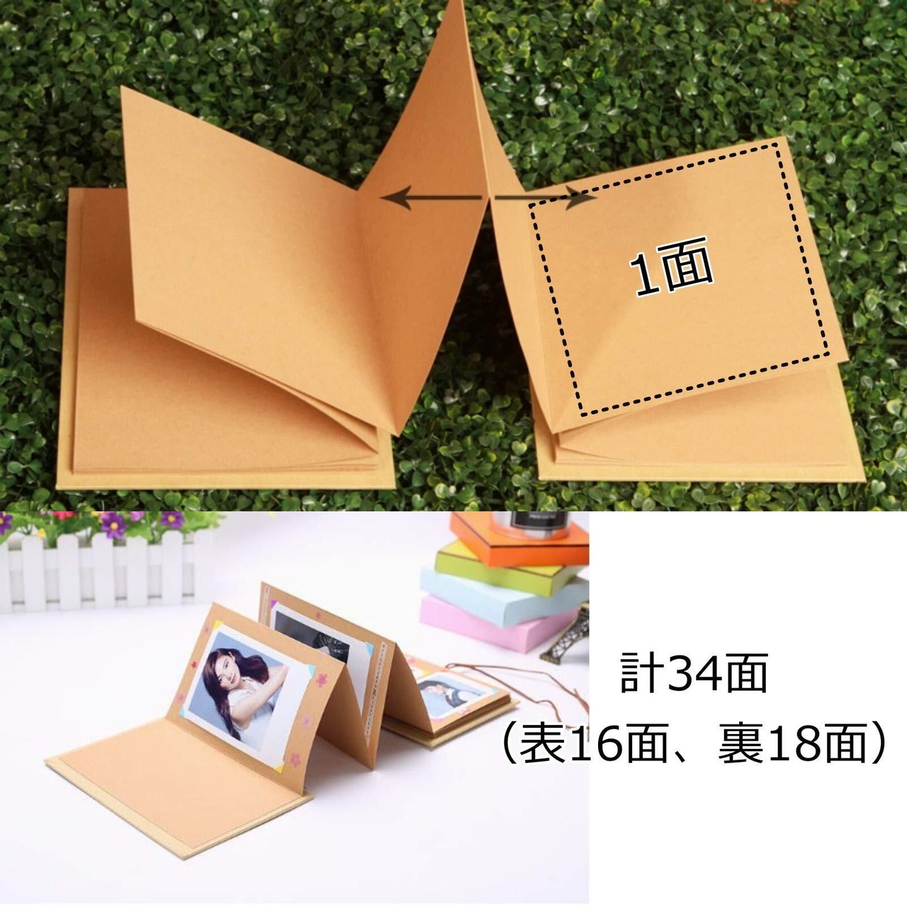 【そのまま飾ってインテリアにもなる】紙をじゃばら状に折っているので、アルバムとしてはもちろん、そのまま広げて飾ったりしても使えます。