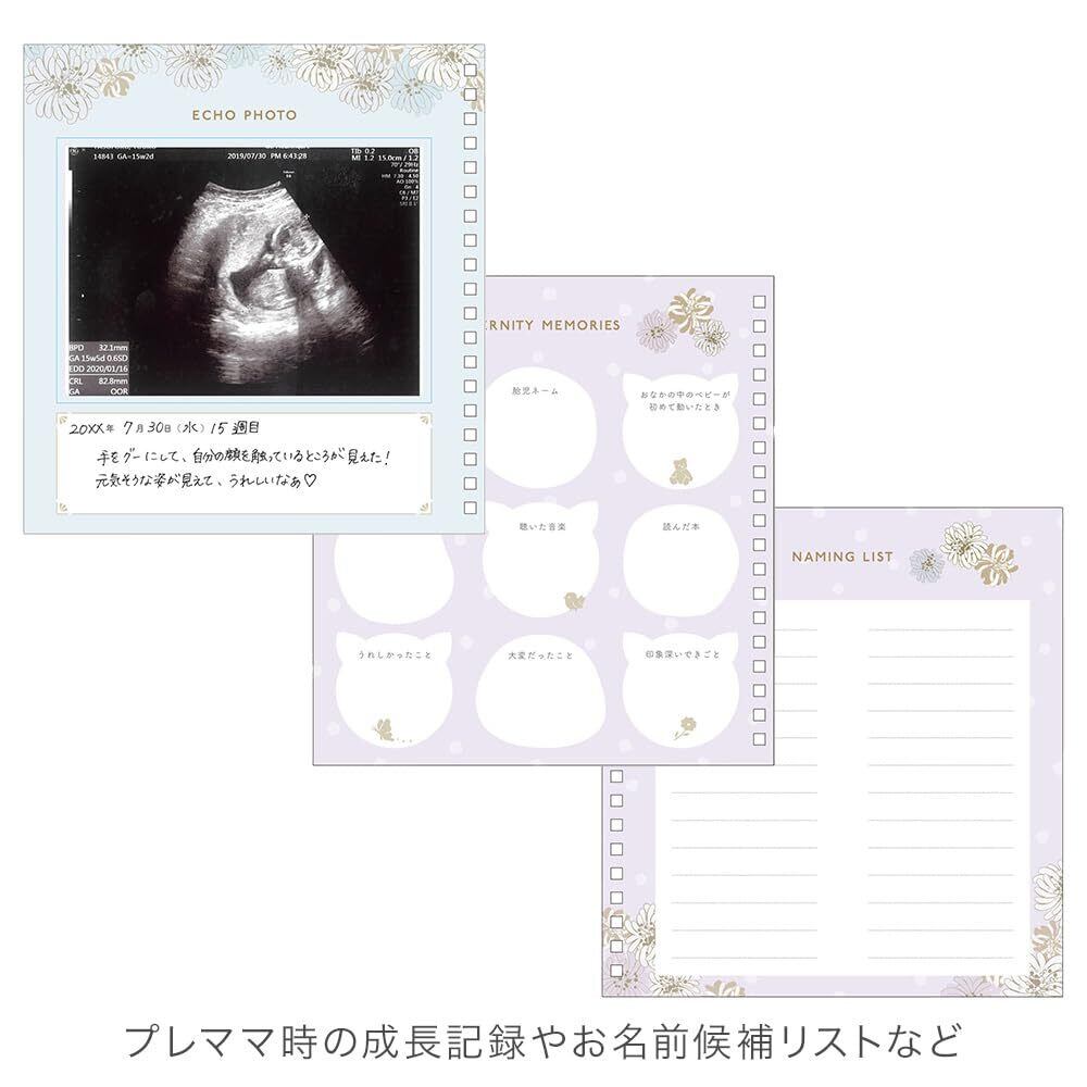 妊娠中の思い出を、エコー写真などと一緒に記録できるアイテム。