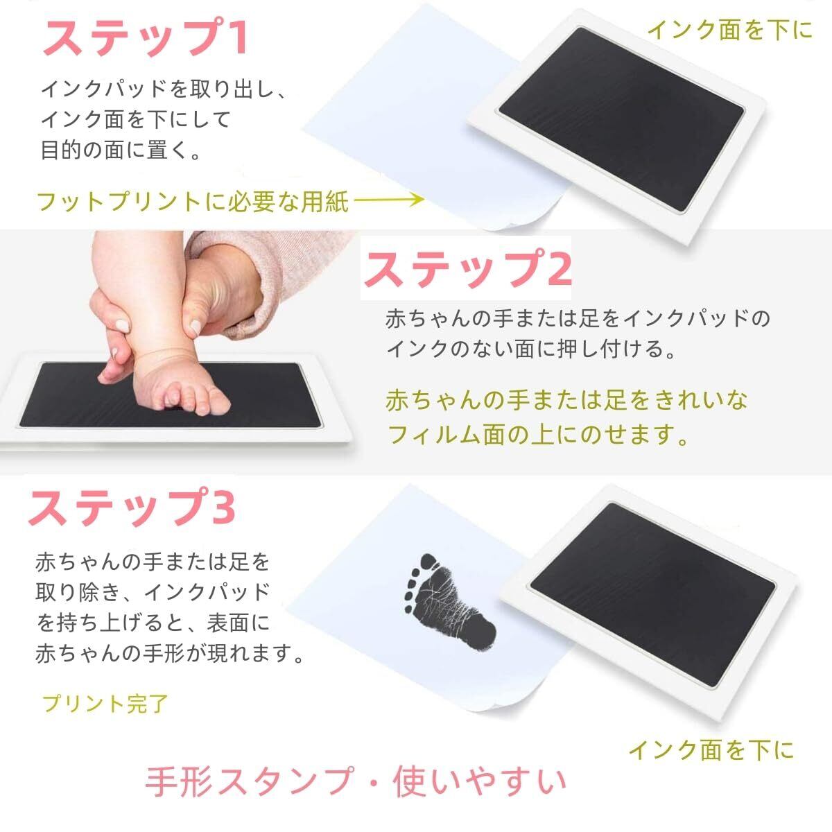 【手足が汚さない】手足が汚さない素材使用し、お子さまの手や足に直接インクをつけずに簡単に手形・足型をプリントできます。