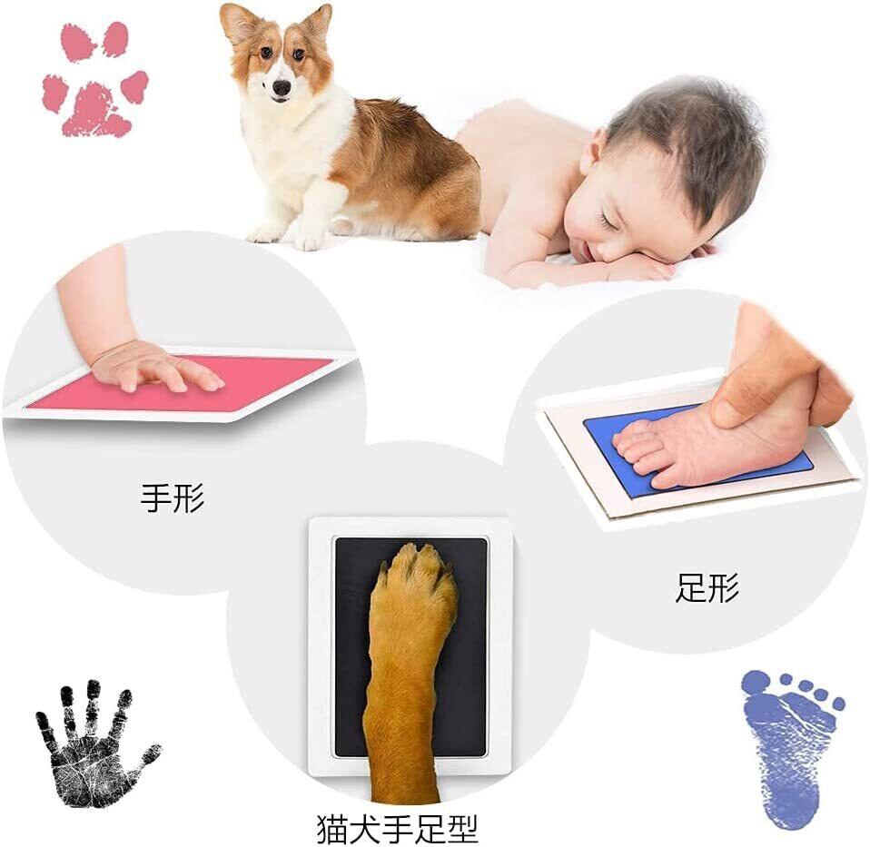 YFFSFDC 赤ちゃん 手形 足形キット 汚れないインク 出産祝い 成長記録 新生児 1歳誕生日 猫犬手足型 記念品プレゼント (ピンク+ブルー+ブラック)