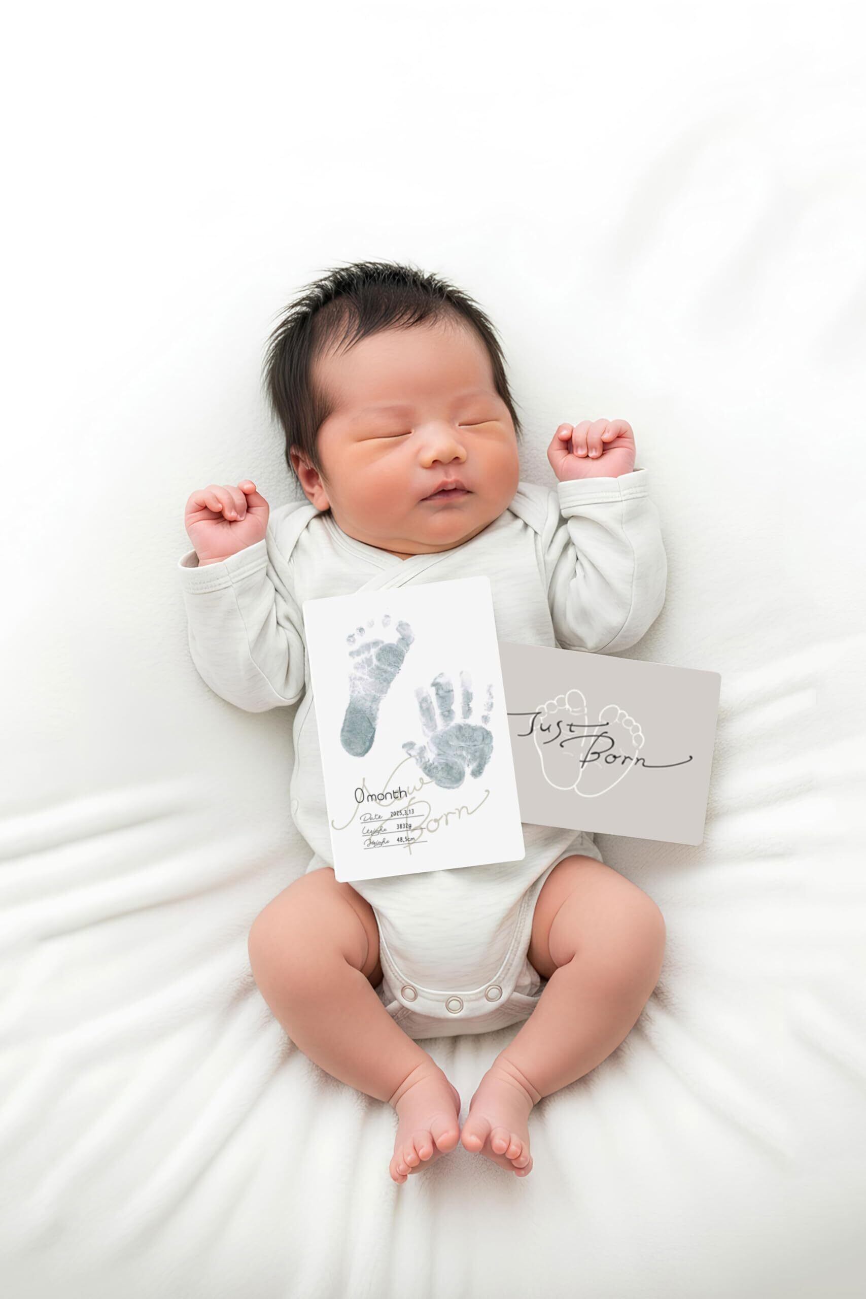 【新春セール】ネームバンド 新生児 誕生カード 手形・足形スタンプ 月齢フォト 出産祝い