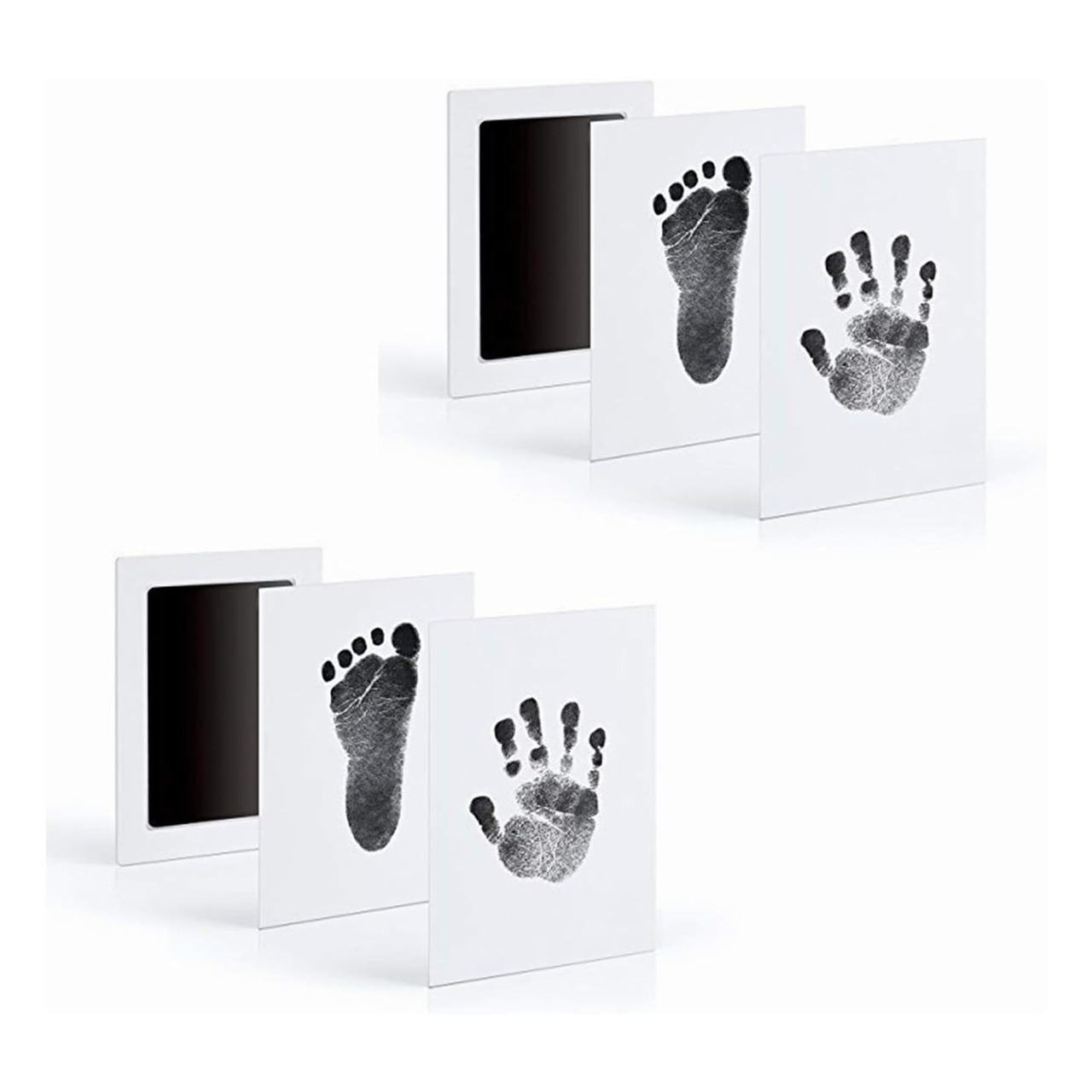 DEVENTORZ 手形 スタンプパッド 手形足形 キット スタンプパッド 2個、インプリントカード4枚 ベビーフレーム 赤ちゃん スワドル 新生児 出産祝い 100日祝い 命名書 成長記録 猫犬手足型 記念品 汚れない インク ブラック