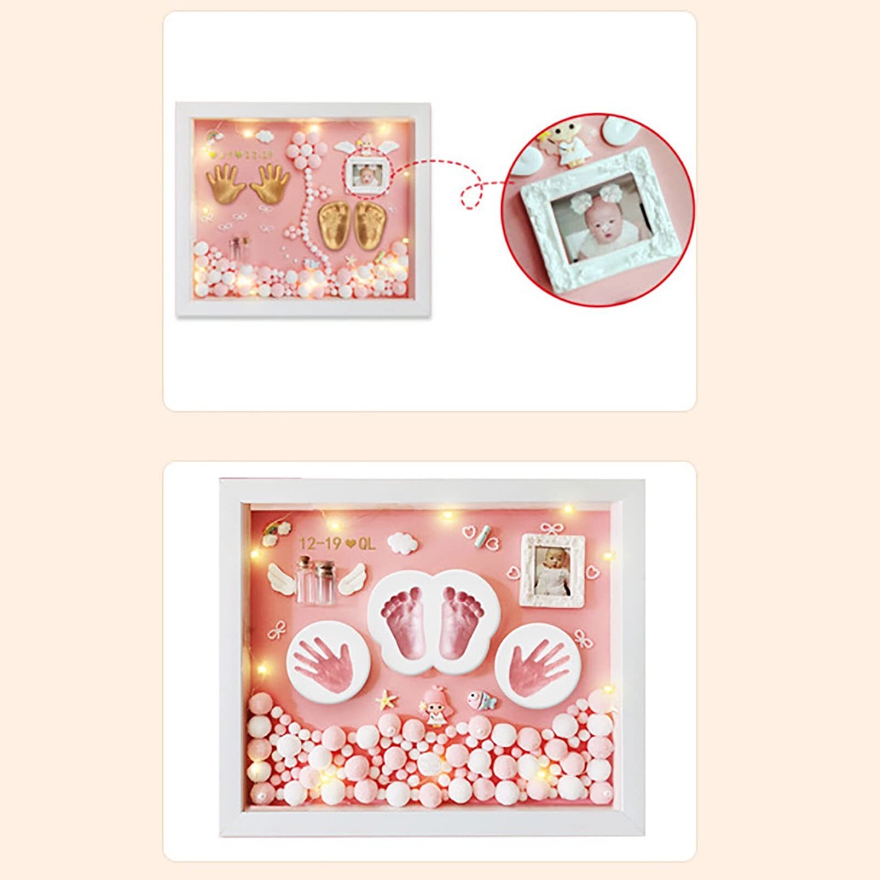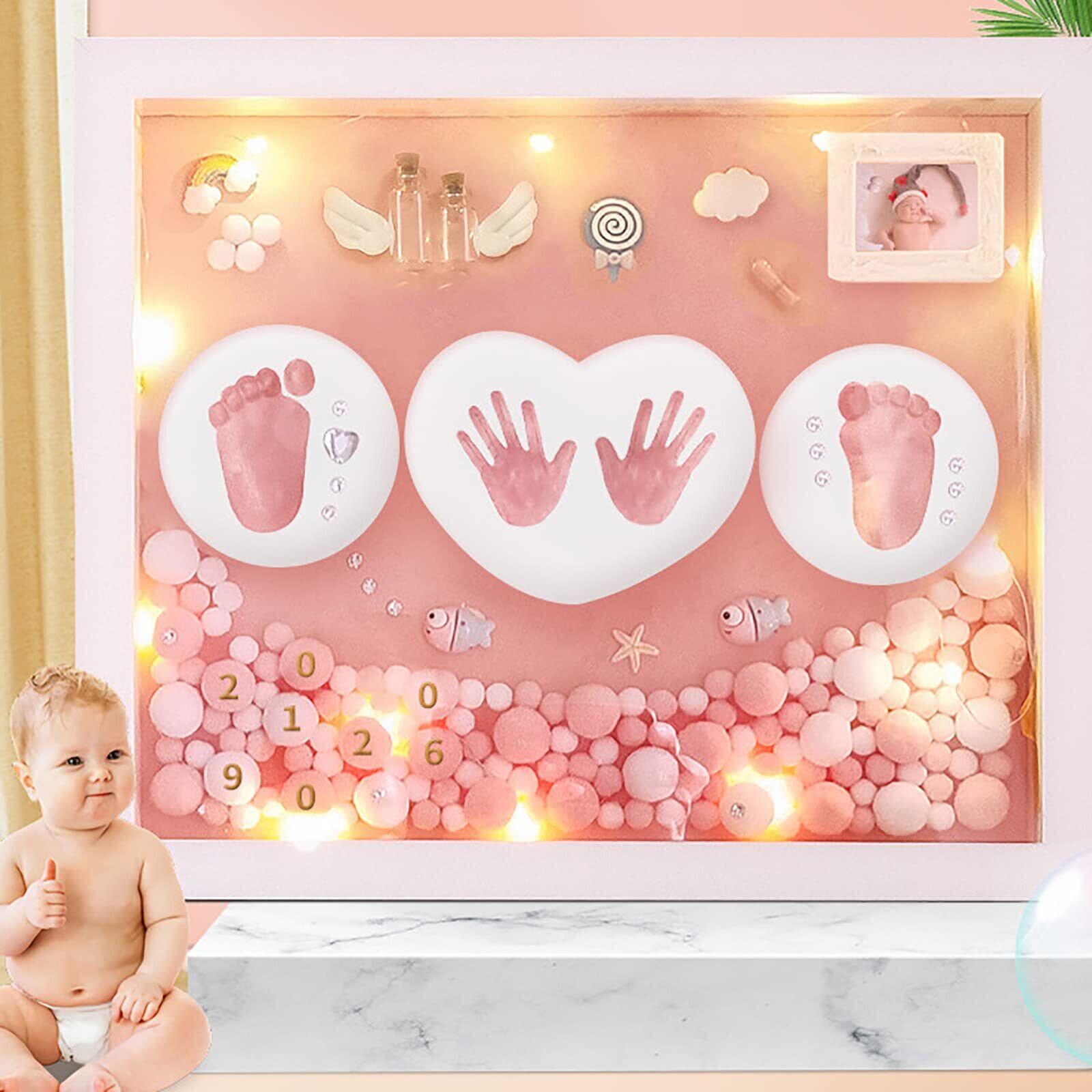 赤ちゃん 手形 足形キット0~6月赤ちゃん対応 汚れないインク ベビーフレーム ギフト 出産祝い 内祝い 子供 記念 ベビー記念品 贈り物 ハンドプリント ピンク