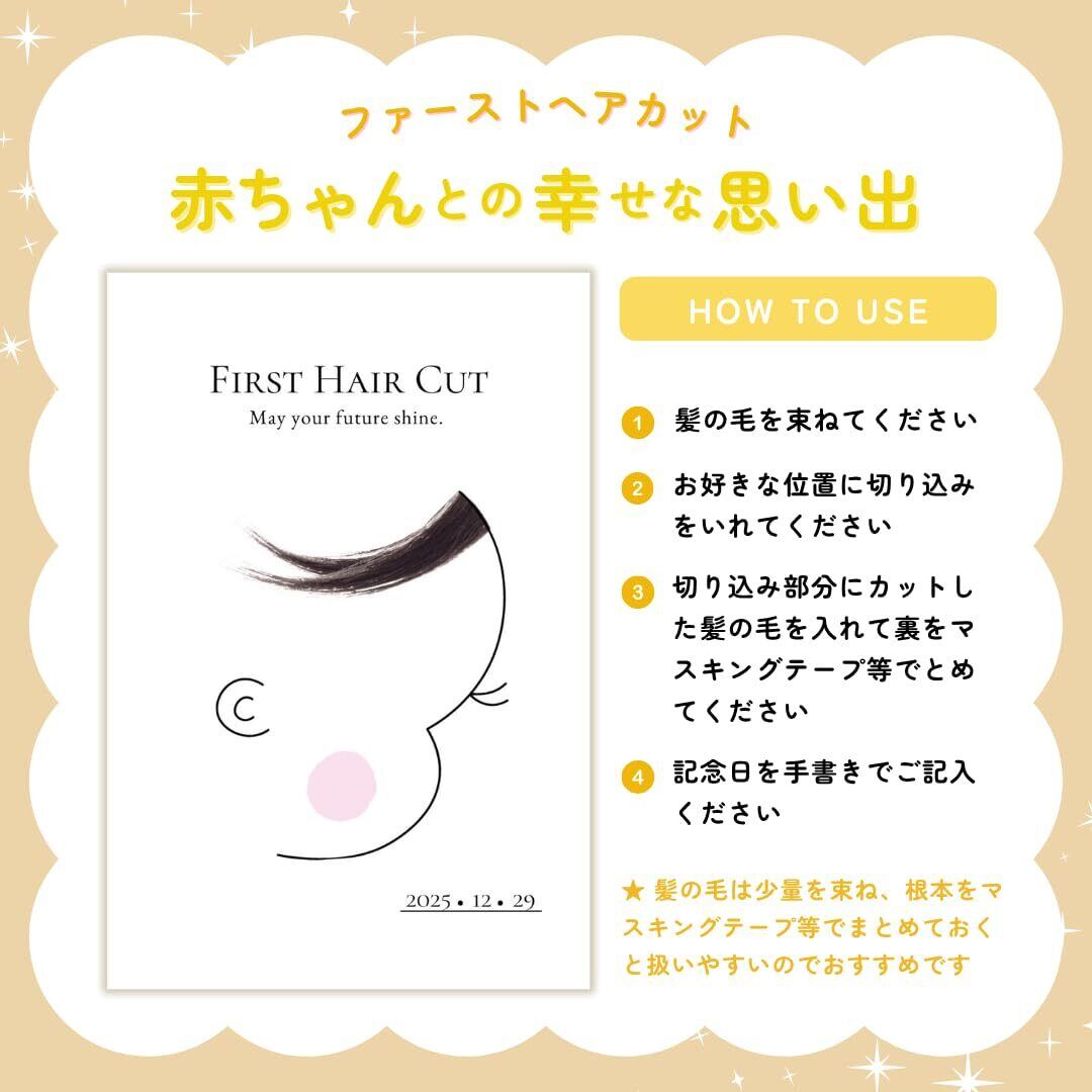 【SNSで話題】赤ちゃんの初めてのヘアカットの記念に。ママのお腹の中にいた時から一緒に過ごしてきた大切な赤ちゃんの髪の毛。記念台紙に飾って、赤ちゃんが生まれた時の感動をいつでも思い出そう。 【セット内容】ファーストヘアカット台紙×2枚 【サイズ】ファーストヘアカット台紙:はがきサイズ(アートポスト紙) 【日付欄付】お誕生日やカット日を手書きできる 【簡単アレンジ】台紙への切り込み・お日付の記入はご自身でおこなっていただきます