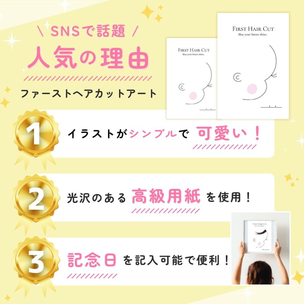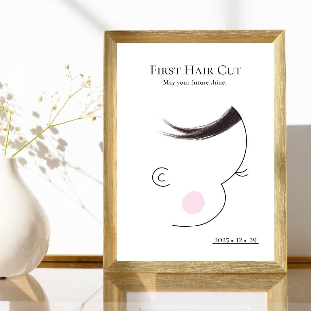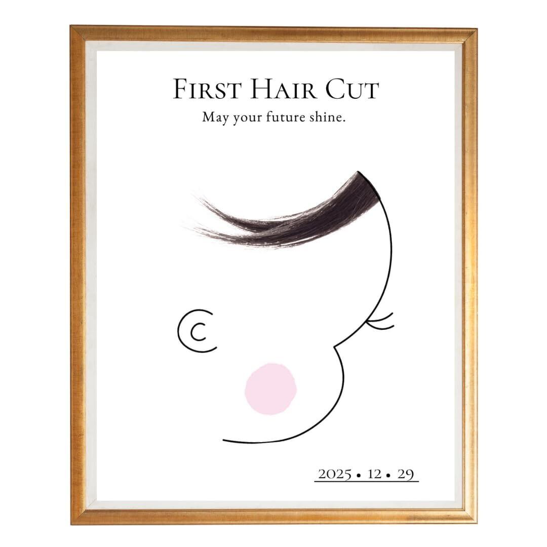 【SNSで話題】赤ちゃんの初めてのヘアカットの記念に。ママのお腹の中にいた時から一緒に過ごしてきた大切な赤ちゃんの髪の毛。記念台紙に飾って、赤ちゃんが生まれた時の感動をいつでも思い出そう。
