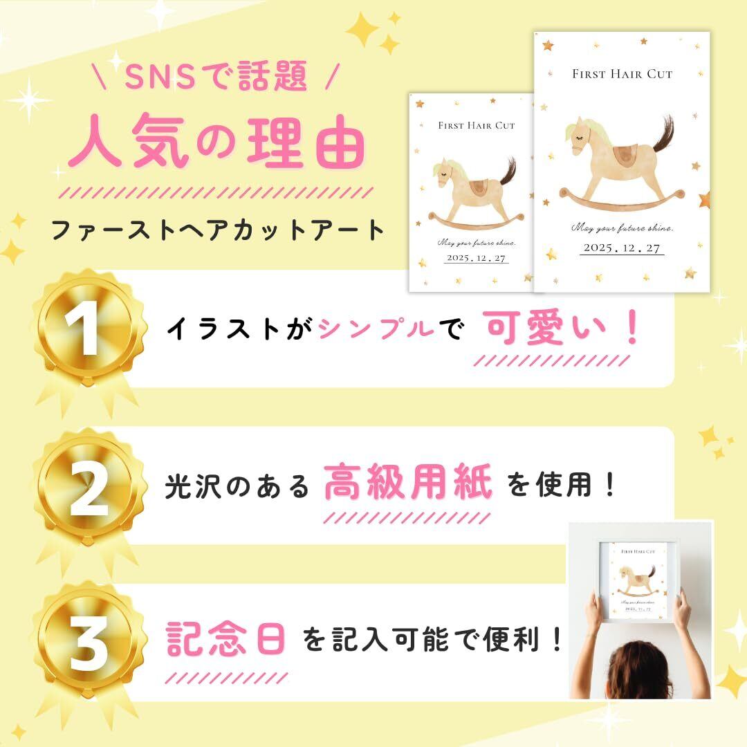 【SNSで話題】赤ちゃんの初めてのヘアカットの記念に。ママのお腹の中にいた時から一緒に過ごしてきた大切な赤ちゃんの髪の毛。記念台紙に飾って、赤ちゃんが生まれた時の感動をいつでも思い出そう。