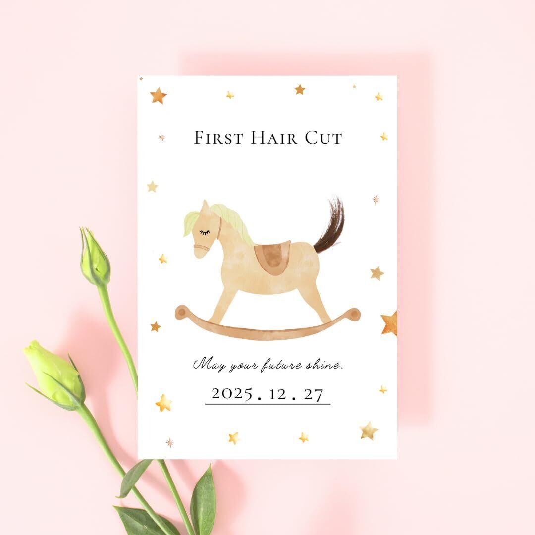 【OIWAIYA】ファーストヘアカット 用紙 台紙 2枚セット ヘアカット ファーストカット 胎毛 胎毛筆 赤ちゃん (木馬)