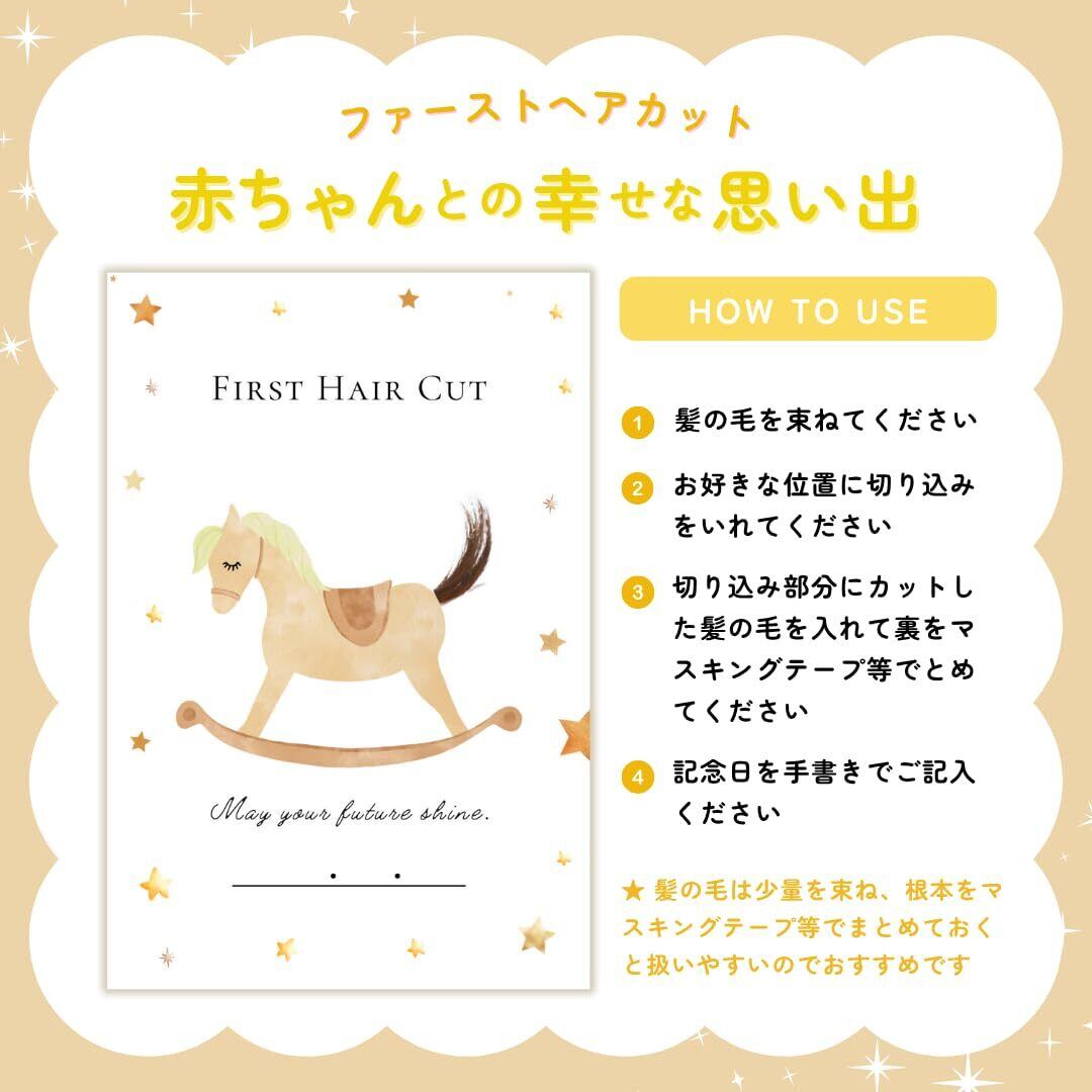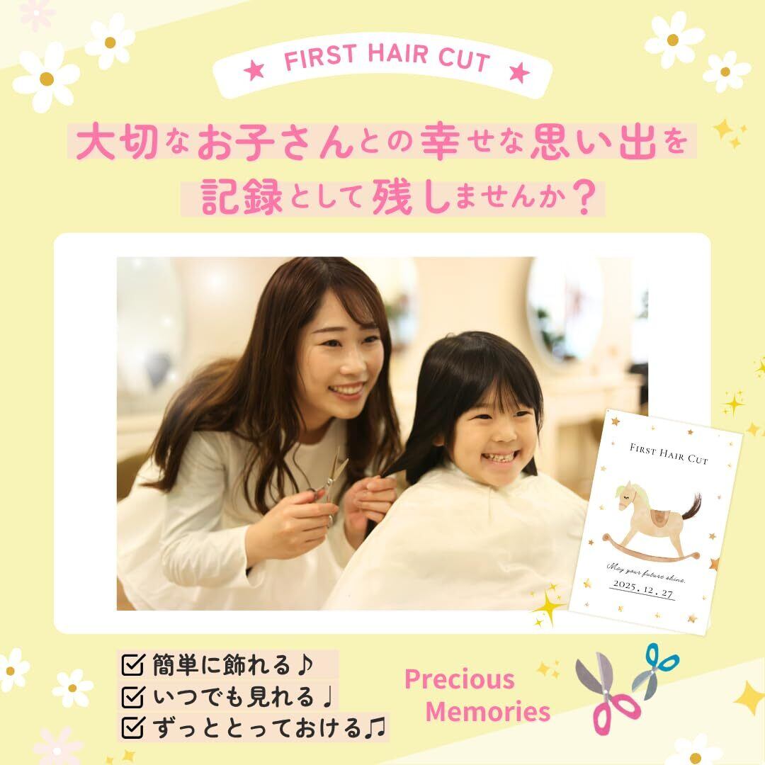 【SNSで話題】赤ちゃんの初めてのヘアカットの記念に。ママのお腹の中にいた時から一緒に過ごしてきた大切な赤ちゃんの髪の毛。記念台紙に飾って、赤ちゃんが生まれた時の感動をいつでも思い出そう。 【セット内容】ファーストヘアカット台紙×2枚 【サイズ】ファーストヘアカット台紙:はがきサイズ(アートポスト紙) 【日付欄付】お誕生日やカット日を手書きできる 【簡単アレンジ】台紙への切り込み・お日付の記入はご自身でおこなっていただきます
