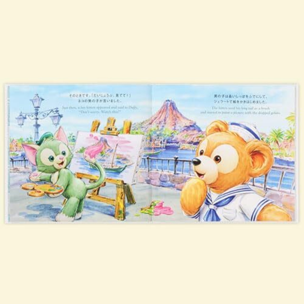 ダッフィーとジェラトーニの出会いが美しいタッチで描かれた絵本