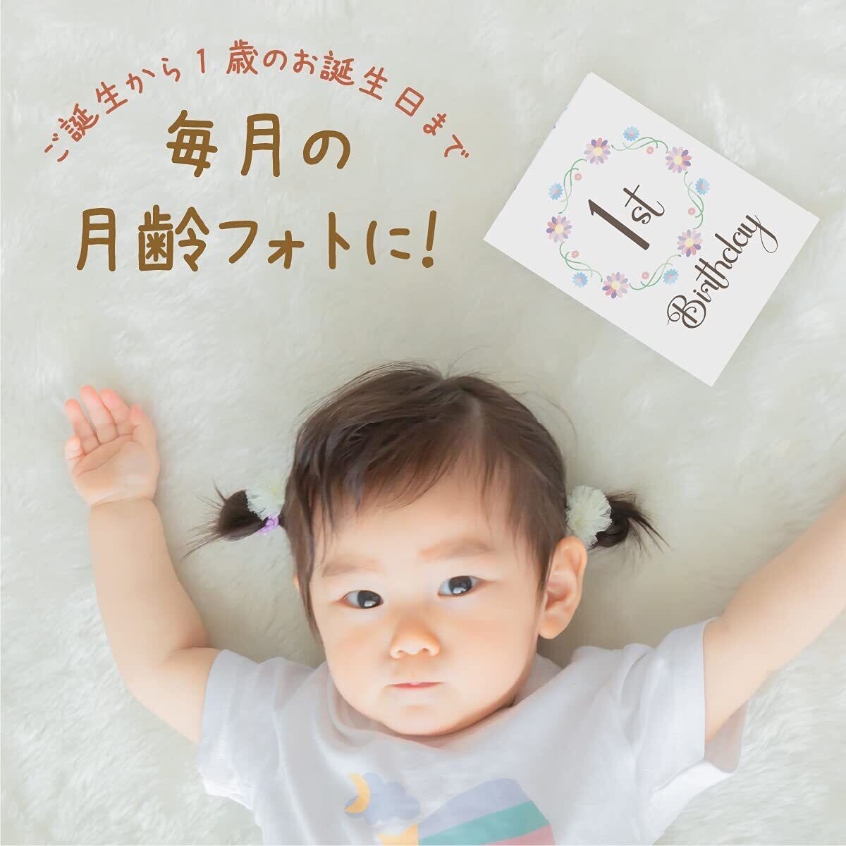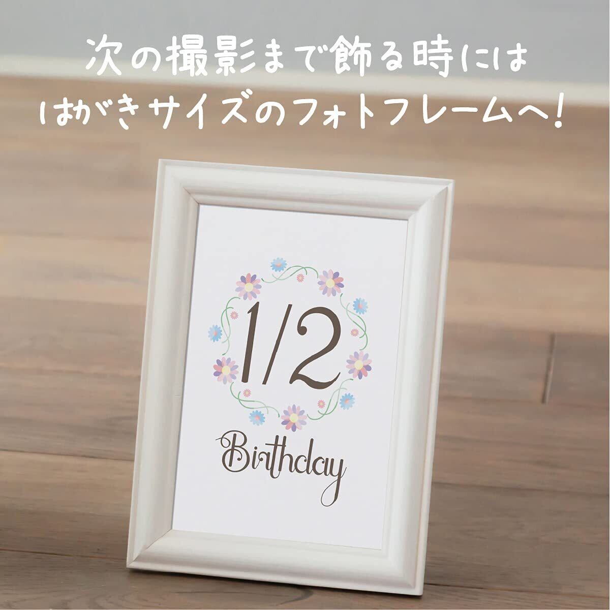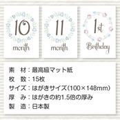お誕生から1歳までの15枚セット。100×148mm(はがきサイズ)は赤ちゃんの撮影にピッタリのサイズ感。