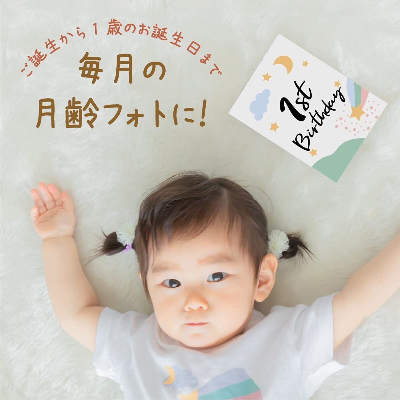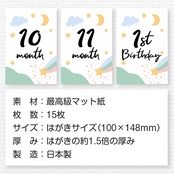 お誕生から1歳までの15枚セット。100×148mm(はがきサイズ)は赤ちゃんの撮影にピッタリのサイズ感。
