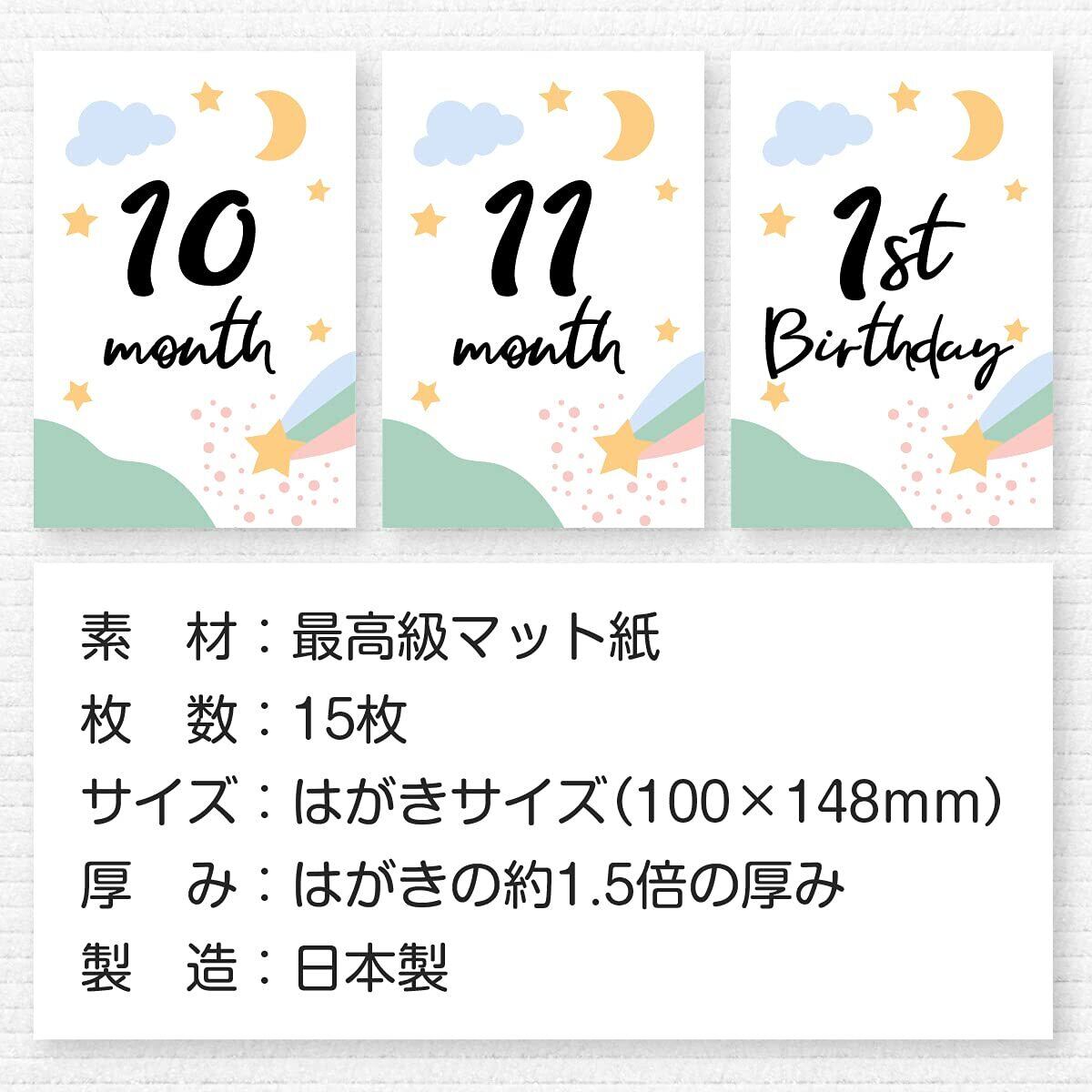 【日本製】デザイナーズ ベビーマンスリーカード 月齢カード・ハガキサイズ15枚 説明書付き 赤ちゃんの月齢フォトに! (タイプC)