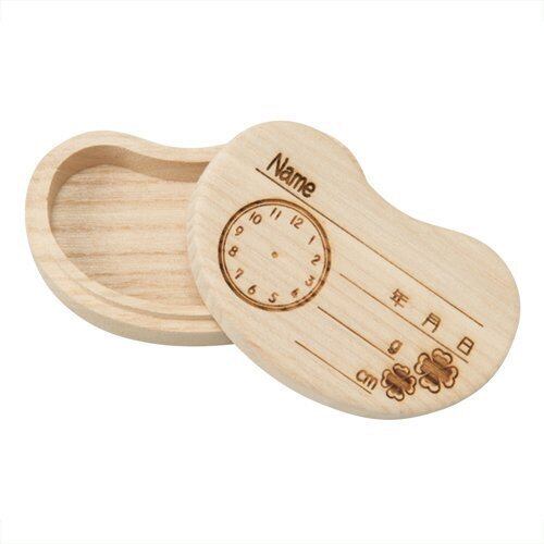 かわいいまめ型の手作り桐でできた「へその緒」ケース。かわいいデザインに加え、生まれた日や時間、身長、体重も記載できます。
