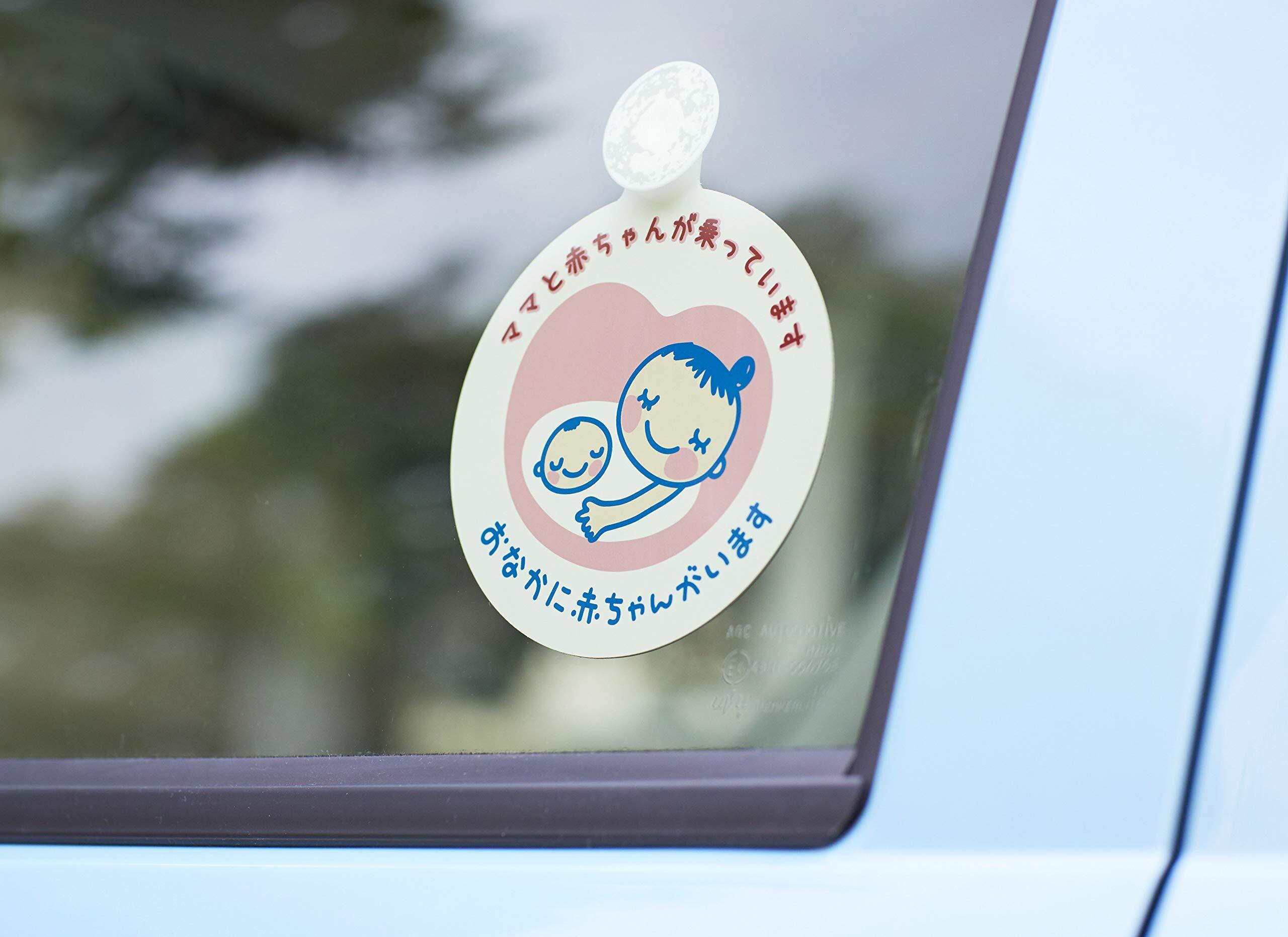 あるようでなかった公認マタニティマーク仕様のドライブマークです。車内のリアウィンドウに吸盤で取り付け、ドライブ中の緊急時に妊婦さんが乗車していることをいち早く周囲に伝えます。