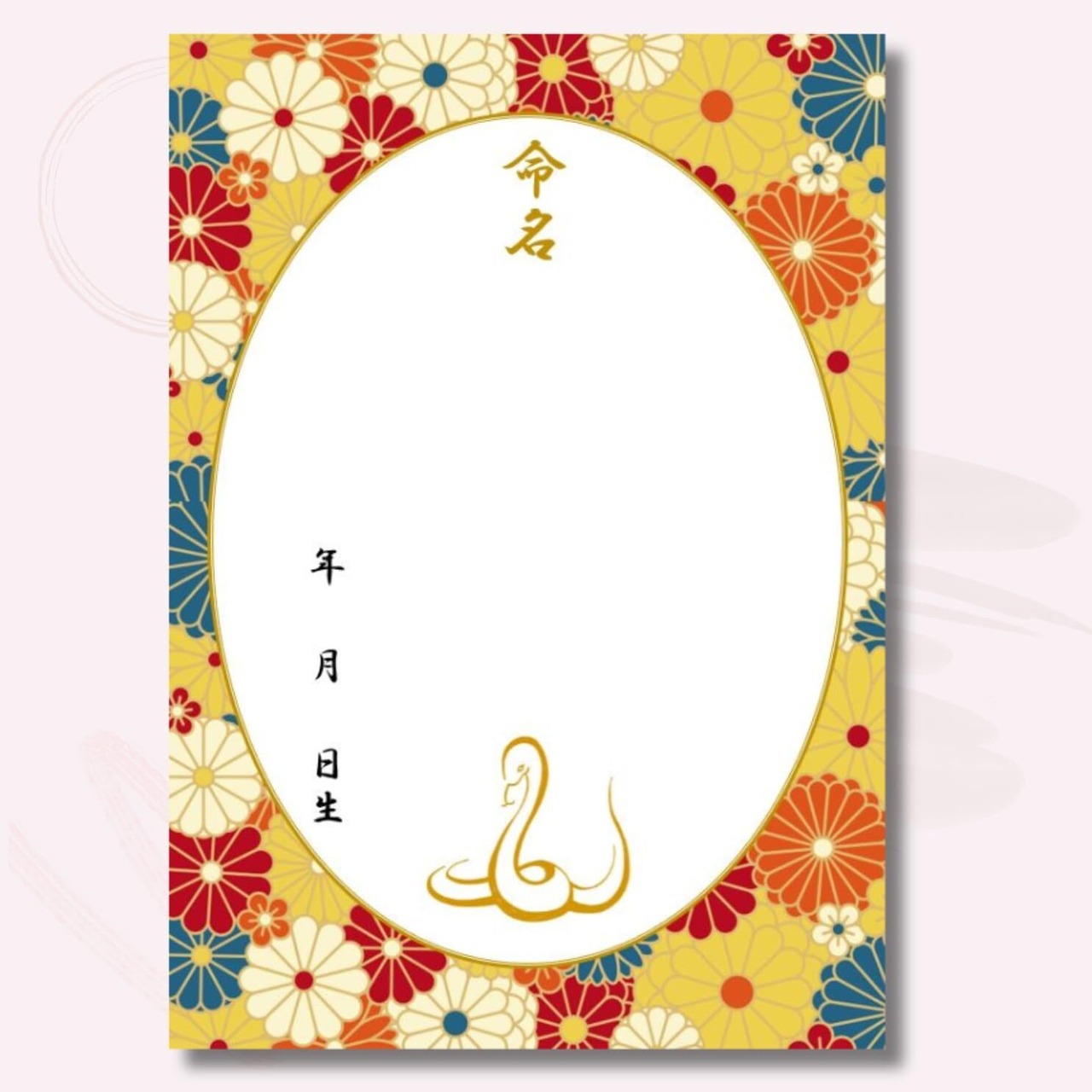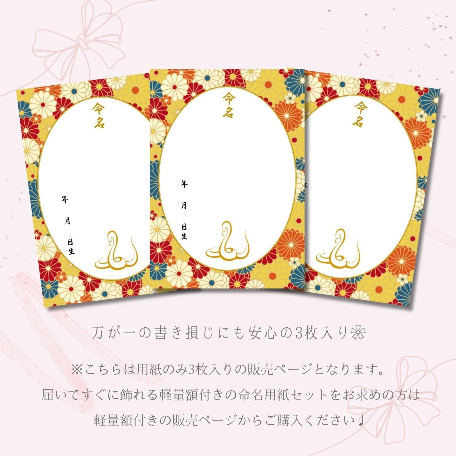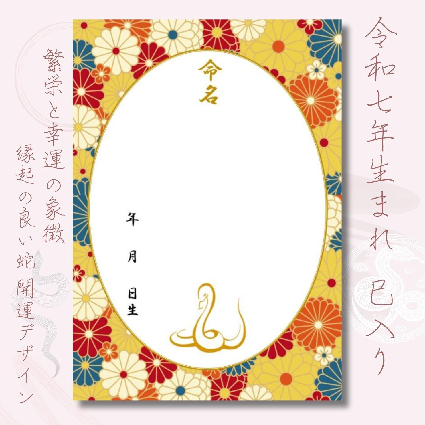 【新着商品】《命名紙3枚セット》令和7年(2025年)干支 巳入り レトロ和花 A4和風命名用紙 3枚入 額なし 令和7年生まれのお子様に最適な干支の巳デザイン 命名書 命名紙 命名式 蛇 ヘビ 繁栄と幸運をあらわす縁起の良いヘビ 和柄命名用紙 花柄 出産祝い 男の子 女の子 お七夜 命名式 日本製 MMS009-T