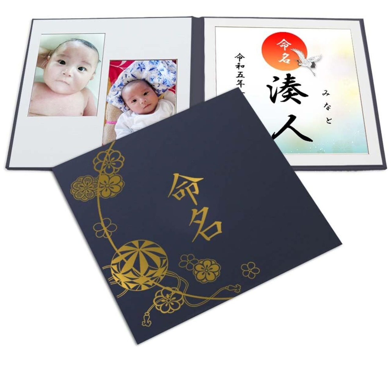 自分で赤ちゃんの写真をプリントして、名前を書いた命名紙とに台紙にはって、残せる命名書です。