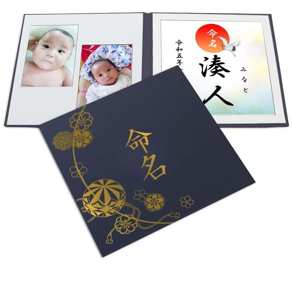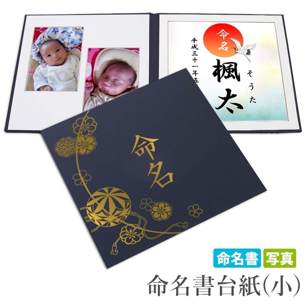 命名書 台紙(小)赤ちゃん 名前と写真をいれて飾れる【まり 紺 命名 ゴールド箔 L判セット】おしゃれ 可愛い かわいい 手作り 飾る 内祝い シンプル 出産祝い 記念品 命名紙 名づけ 命名 祖父母 プレゼント 自分で書く オーダー 子供 名入れ 用紙 お七夜 オリジナル 日本製(まり紺k2)