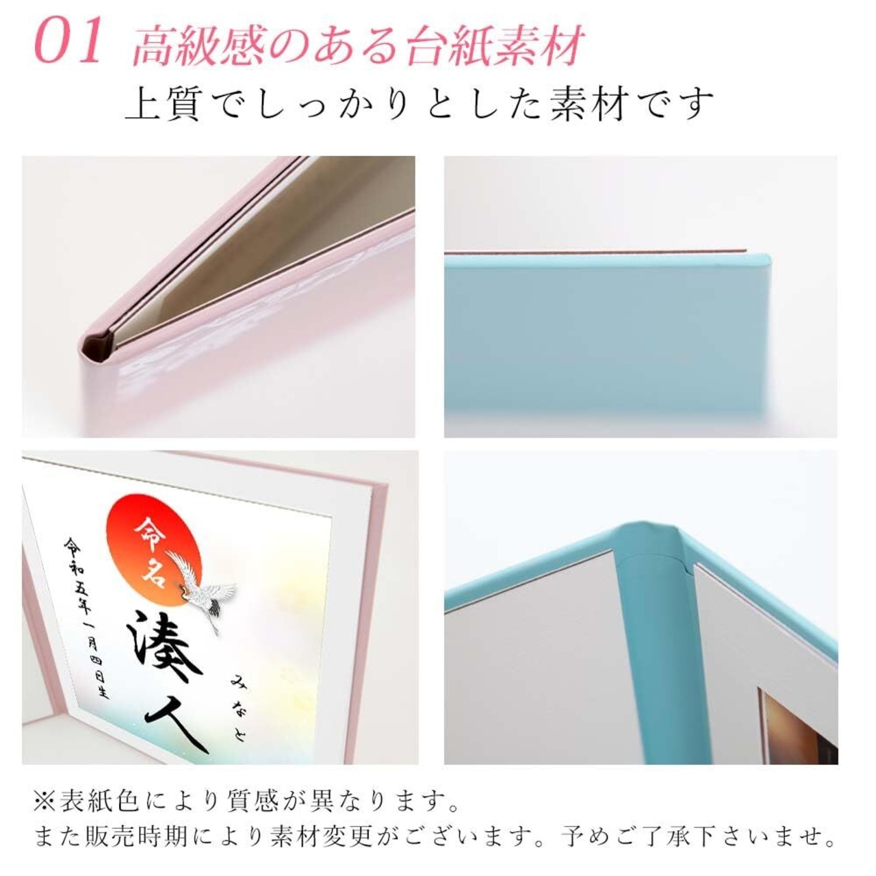 アルバムの表紙色は、お客様のご覧になっている画面の色と、実際の商品の色が異なることがございます。