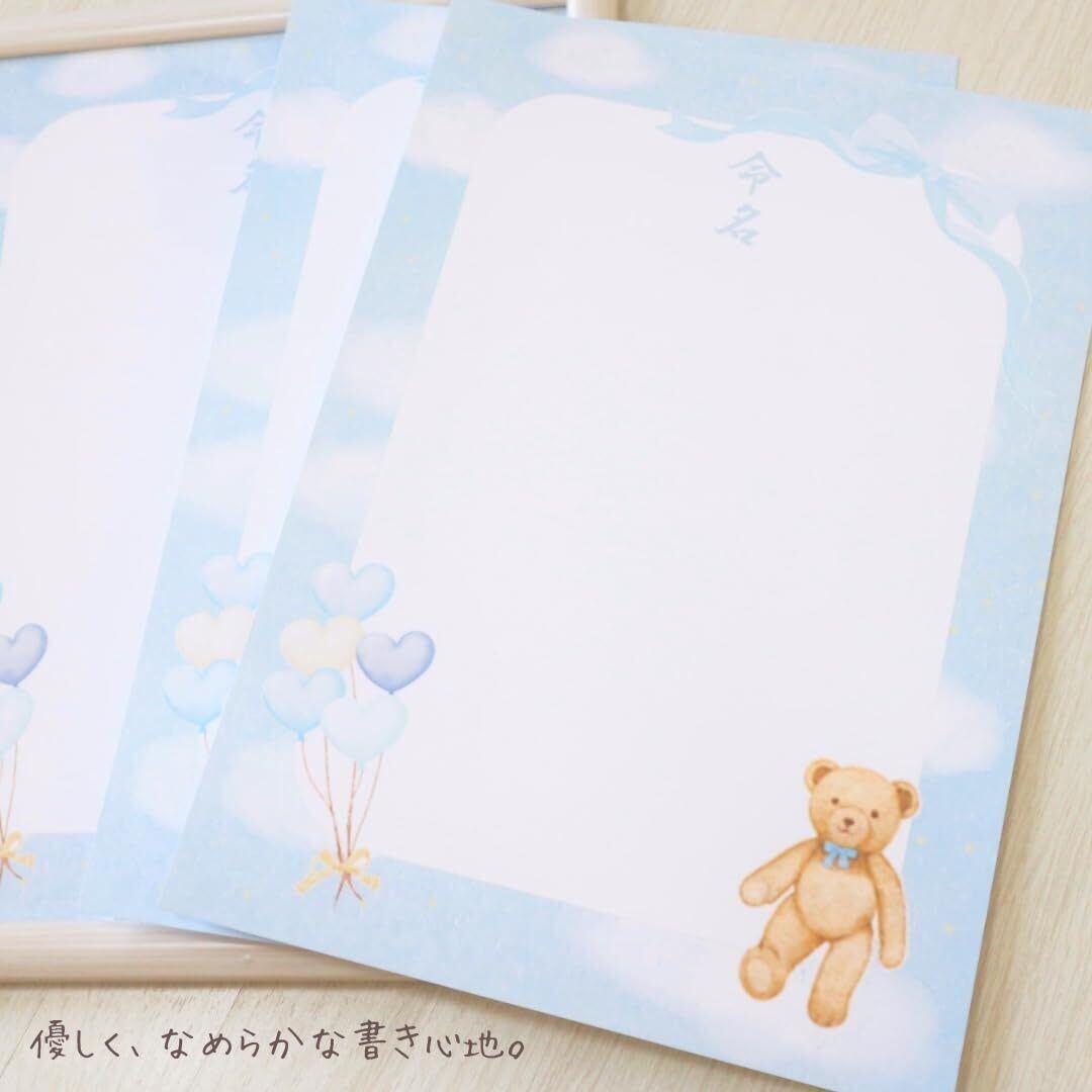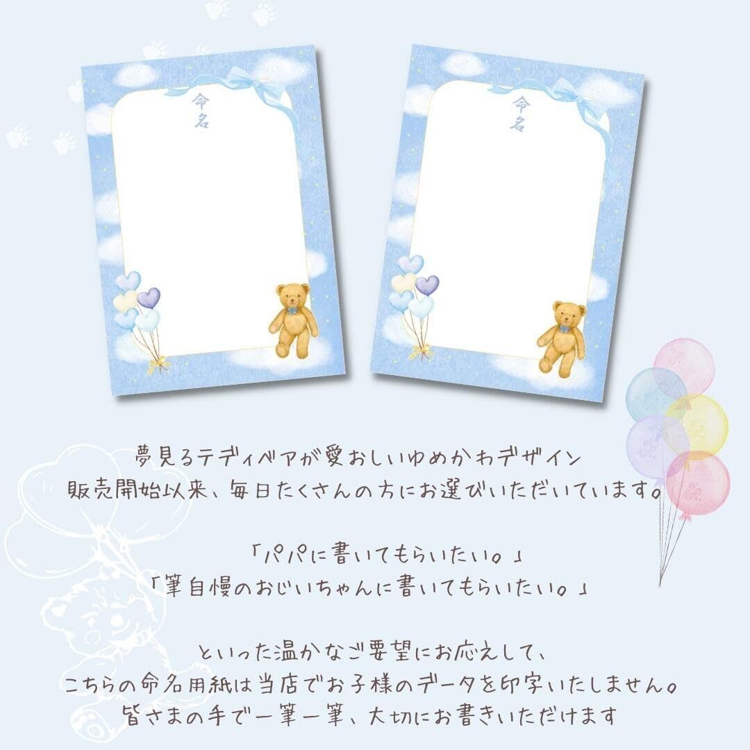 【在庫セール】《命名紙3枚セット》夢見るベア A4サイズの命名用紙 書き損じにも安心の3枚入 額なし 命名書 命名紙 命名式 ゆめかわ命名用紙 パステルカラー テディベア 男の子 女の子 出産祝い 日本製 MMS-DB