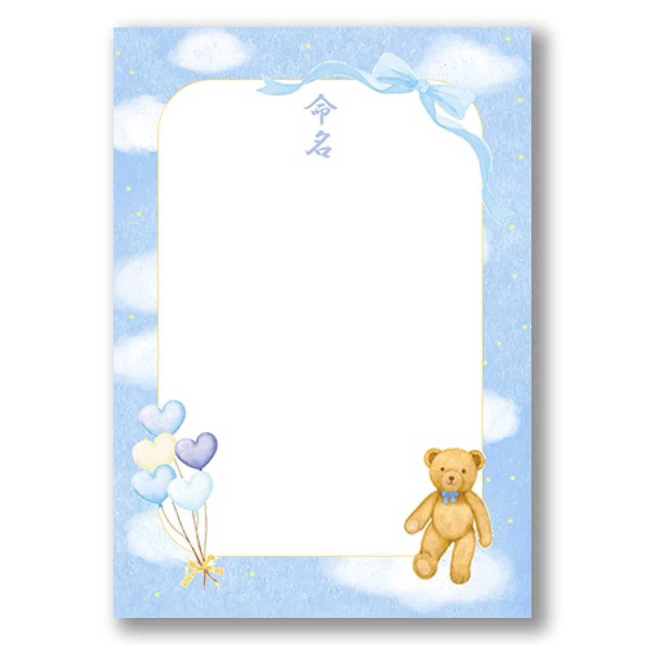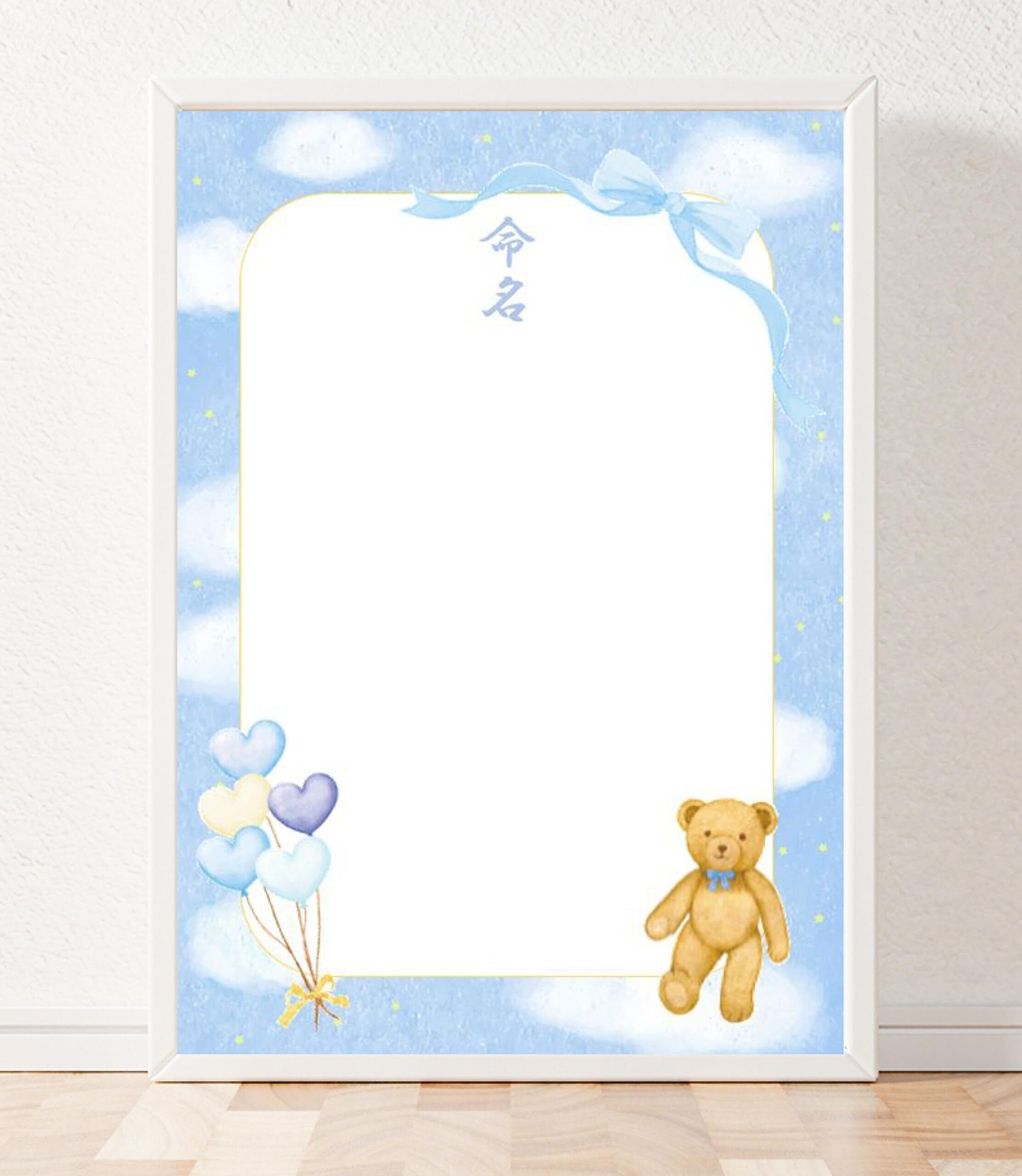 《命名紙3枚セット》夢見るベア A4サイズの命名用紙 書き損じにも安心の3枚入 額なし 命名書 命名紙 命名式 ゆめかわ命名用紙 パステルカラー テディベア 男の子 女の子 出産祝い 日本製 MMS-DB