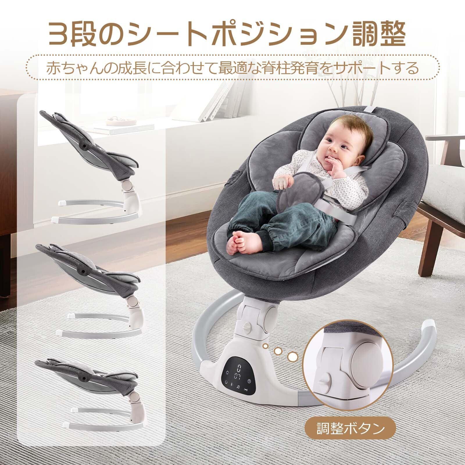 【スマート化】スマートセンススウィング機能が付き、該当ボタンを起動するまま、赤ちやんの動きを感知すると、電動バウンサーは自動的にスウィングします。