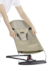 ベビービョルンのバウンサーが新しく生まれ変わりました。やわらかな生地は肌にやさしく、立体的に裁断されたカバーで赤ちゃんの体をしっかりと包み込みます。独自のカーブでデザインされたフレームは非常にやさしい揺れを生み出し、生後1ヶ月からのお子様の特等席となることでしょう。 バウンサーバランスソフトのやさしい揺れは赤ちゃんを心地よくあやします。電動ではなく、赤ちゃんの小さな動きがそのまま本体に伝わり、自然な心地よい揺れを与えてくれます。慣れると赤ちゃんが思いのままに揺らすことができ、さらにごきげんに。3段階にリクライニングできるので生活に合わせて使用できます。お子様が立てるくらいに成長すればカバーを裏返して、イスとしても使用できます。フレームの裏側には滑り止めのゴムが全面についているので、床を傷つけず、音も静か。折りたたみも出来て、持ち運びもできるので、帰省やちょっとした旅行にも便利です。カバー部分は取り外して、洗濯機で洗えます。