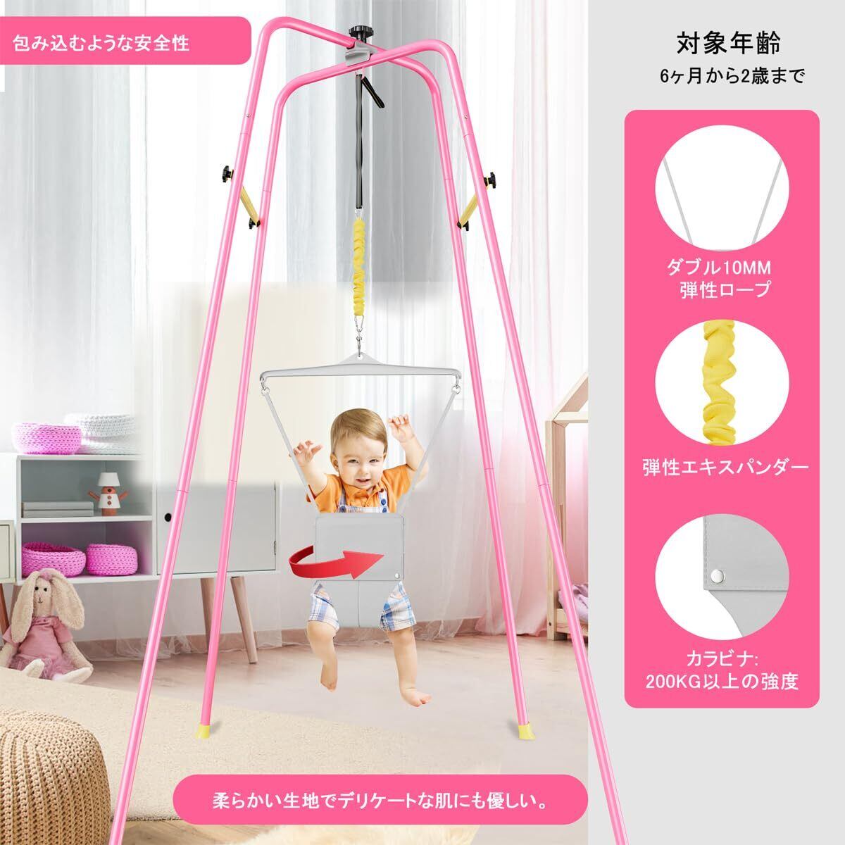 【高品質で安全】:当社のベビージャンパーは丁寧に作られています。 頑丈なスチールパイプ、安全なロックカラビナ、高品質の滑り止めゴム足、快適なコットンシートでアップグレードしました。 お子様は自信を持って飛び跳ねるのが大好きになるでしょう。