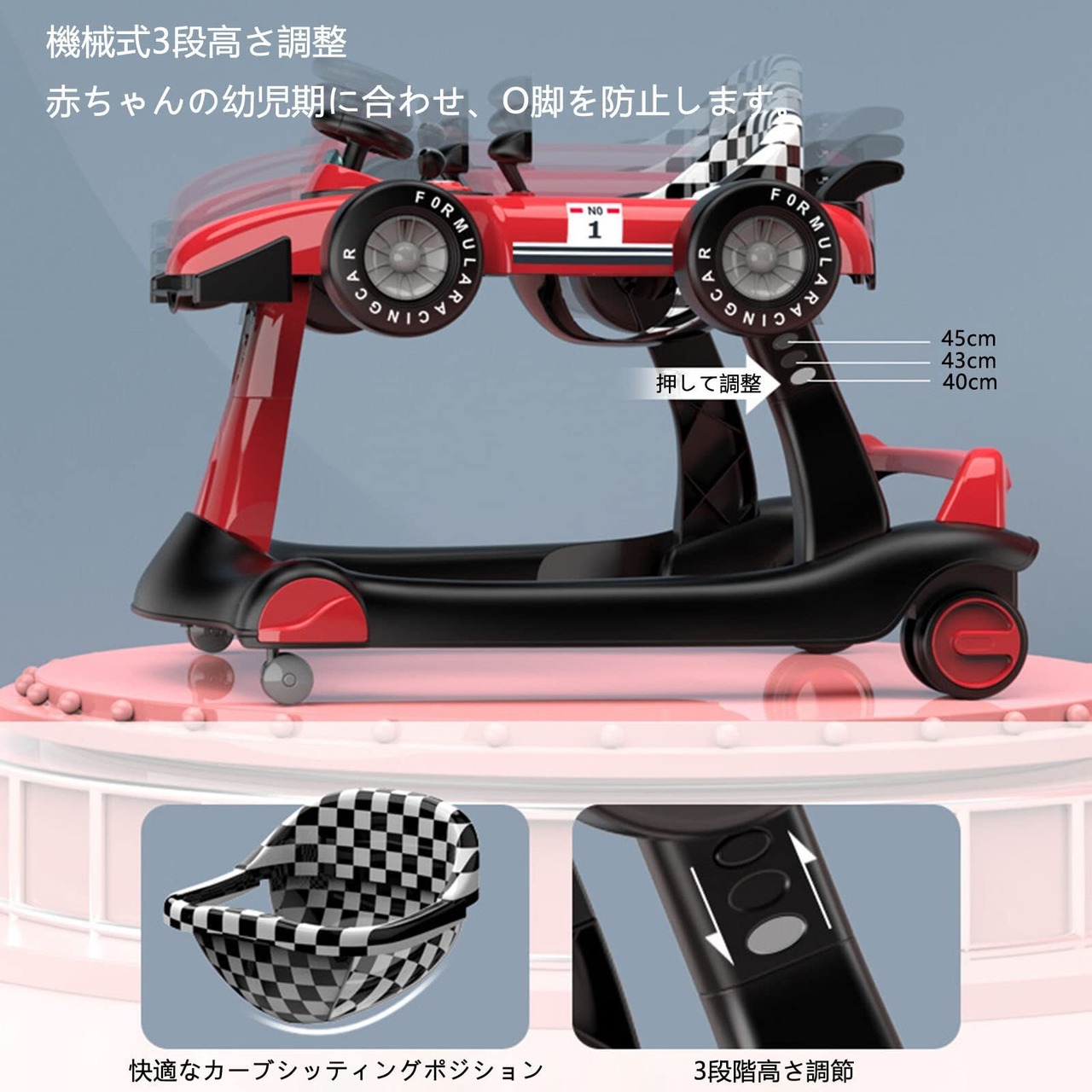 [本体サイズ] :75×58×43cm。車形・歩行器・音楽を再生可能。2wayウォーカー:ウォーカー・手押し車として使用できる。また赤ちゃんへのプレゼントとしても最適です。