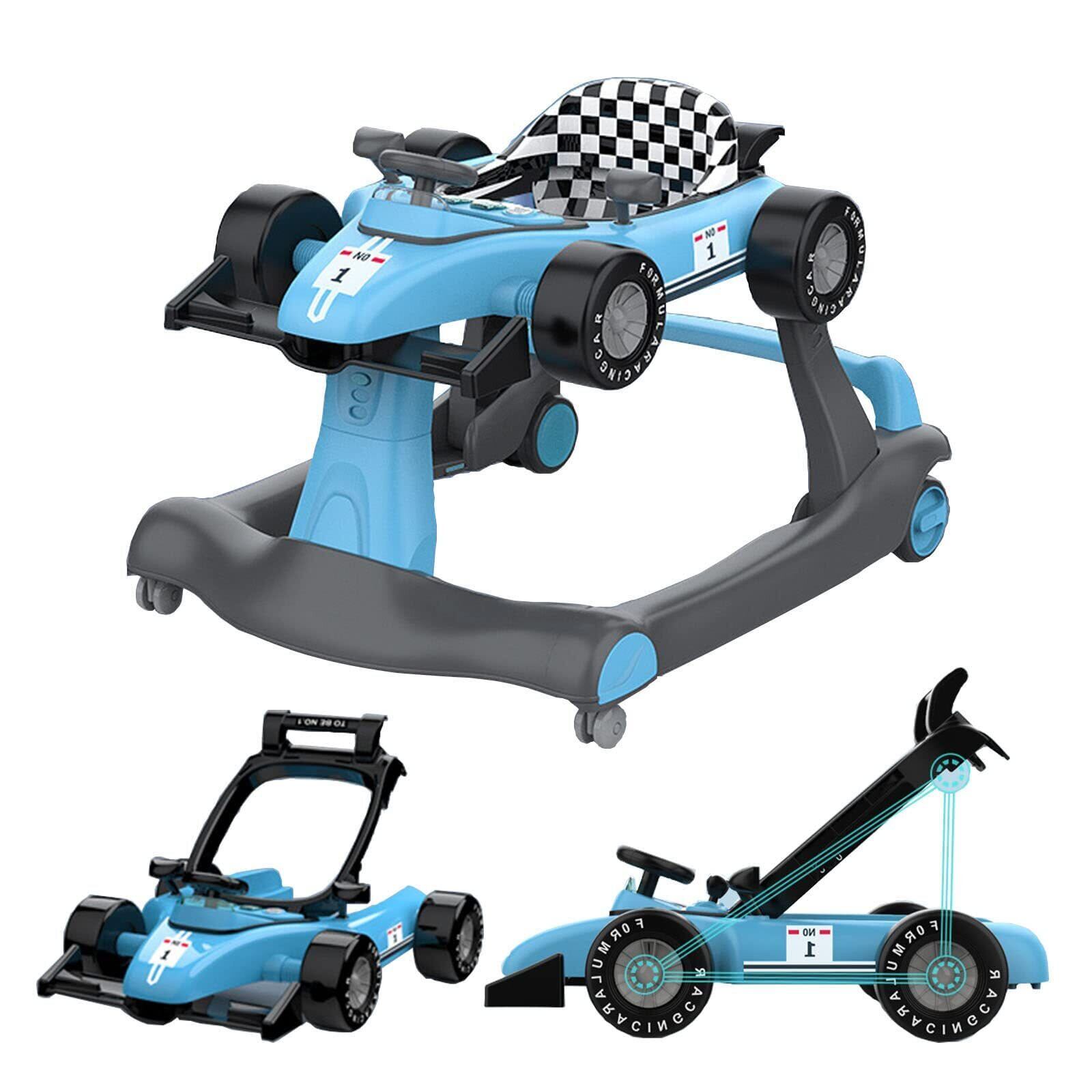 歩行器 ベビーウォーカー 赤ちゃん 歩行機 育児 3way ウォーカー/手押し車として使用可能 歩く練習 安全ストッパー 取り外し可能 高度調整可能 滑り止め 車形 安全 音楽を再生可能 6か月 室内玩具 (ブルー)