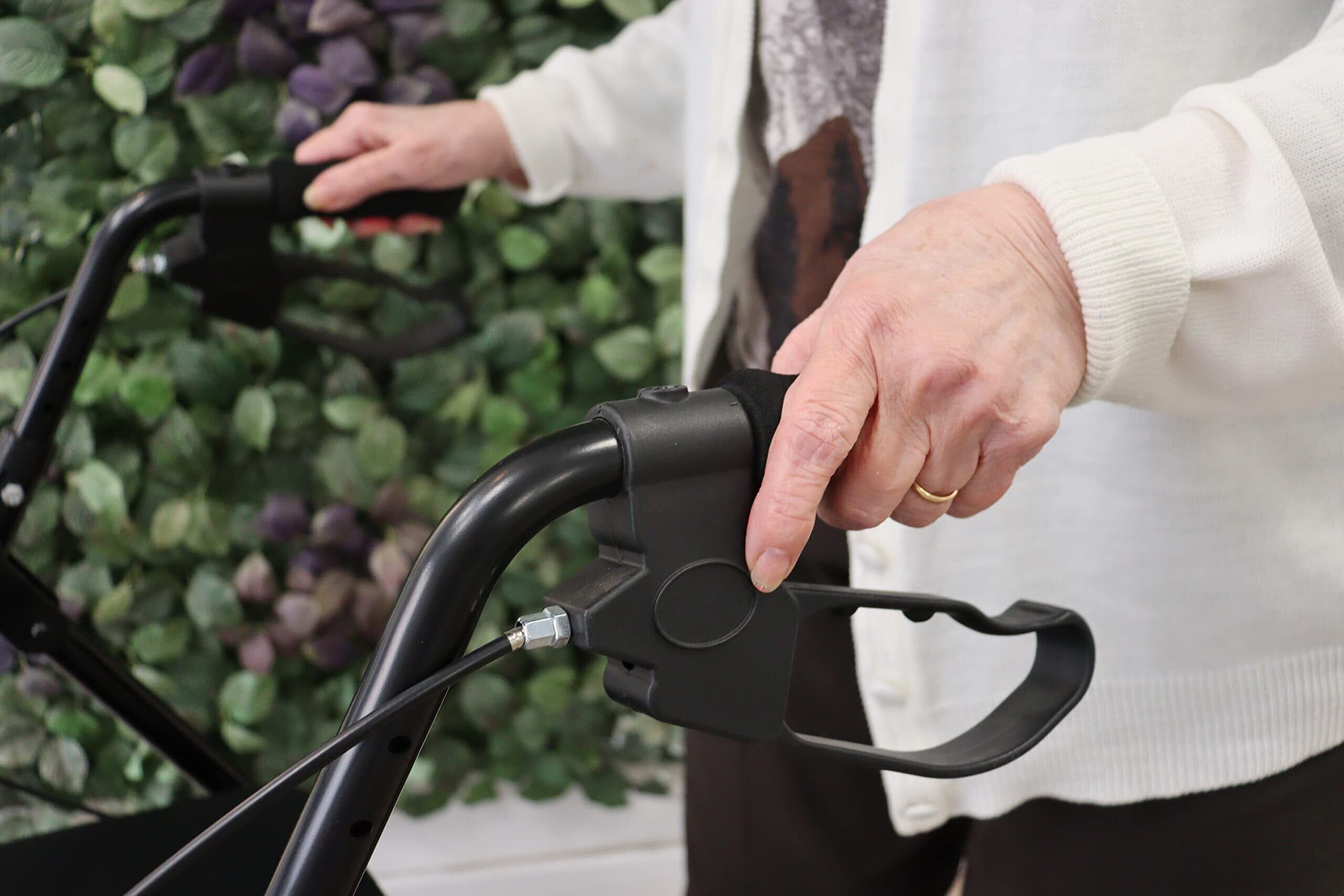 安全:ケーブルブレーキシステムとパーキングブレーキがあり、歩行器を完全にロックし、シートの使用時に動くことを防ぎます。