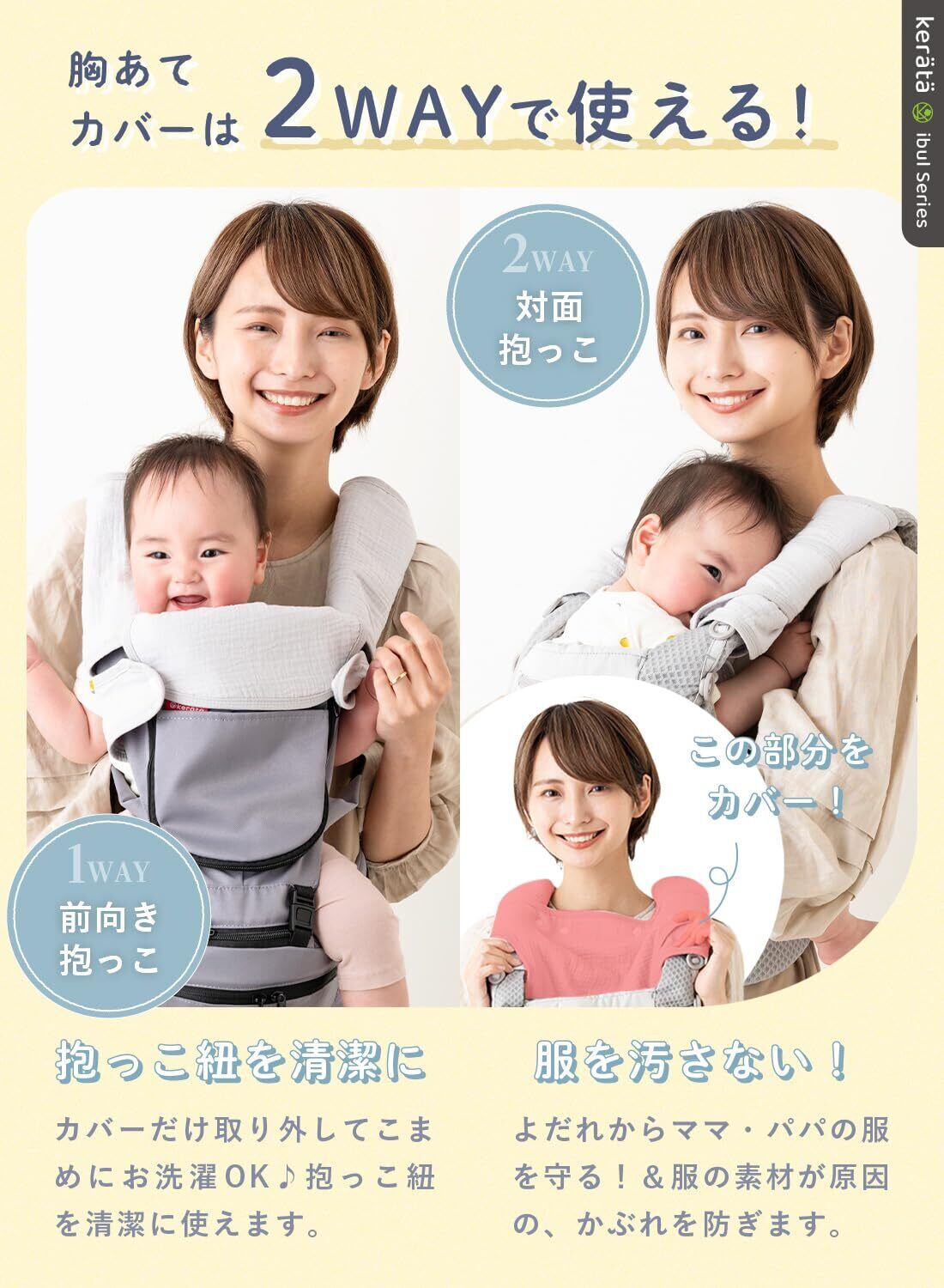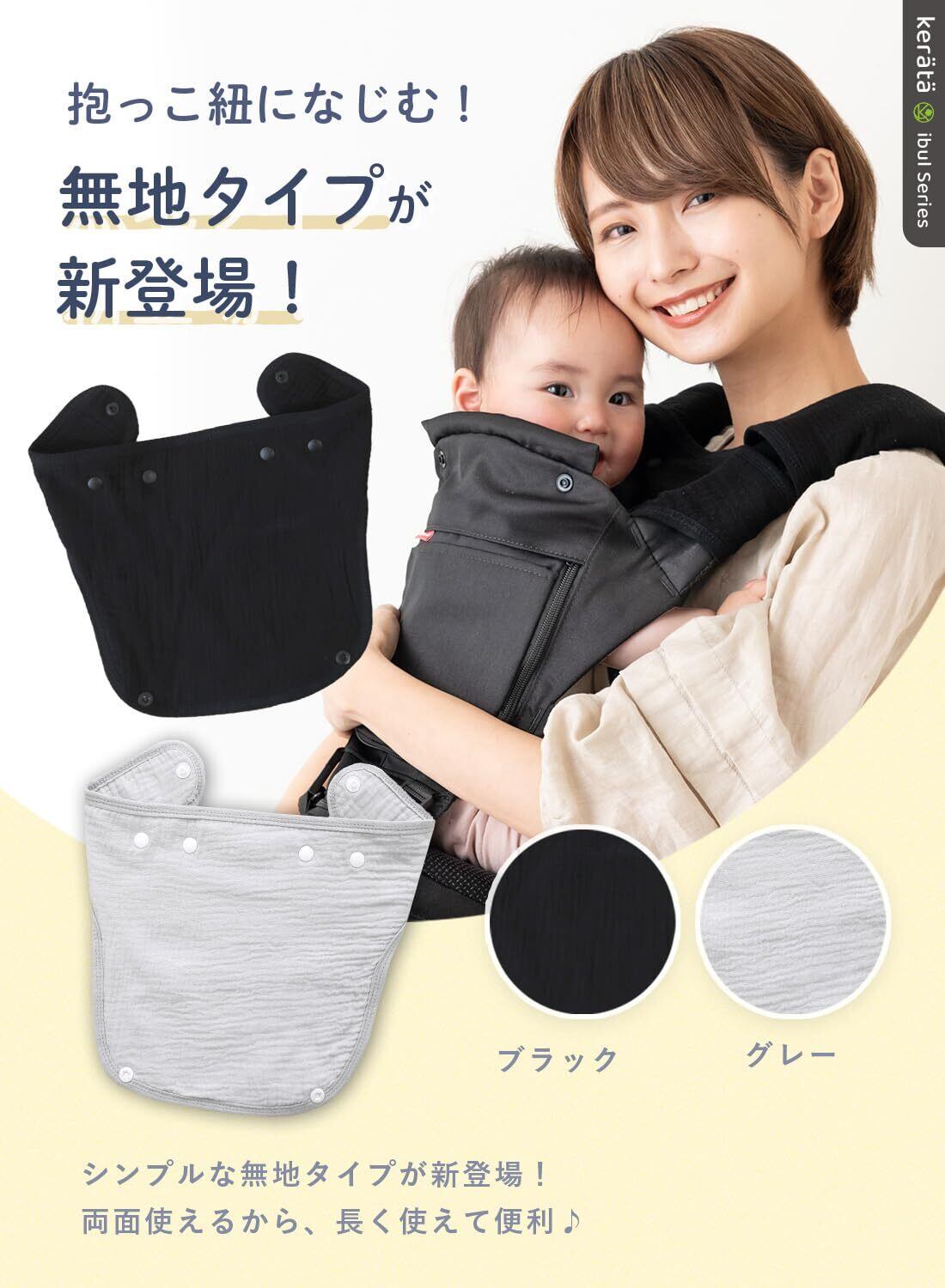 【防水よだれカバー登場】ケラッタから防水よだれカバーが新登場。ケラッタ独自の防水構造を採用し、たっぷりよだれもしっかりキャッチ!韓国発祥の寝具「イブル」をモチーフに、抱っこ紐に自然になじむシンプルな無地でご用意しました コットン100%ガーゼを贅沢に使用したベルトカバー + 胸当てセットのよだれカバーです。