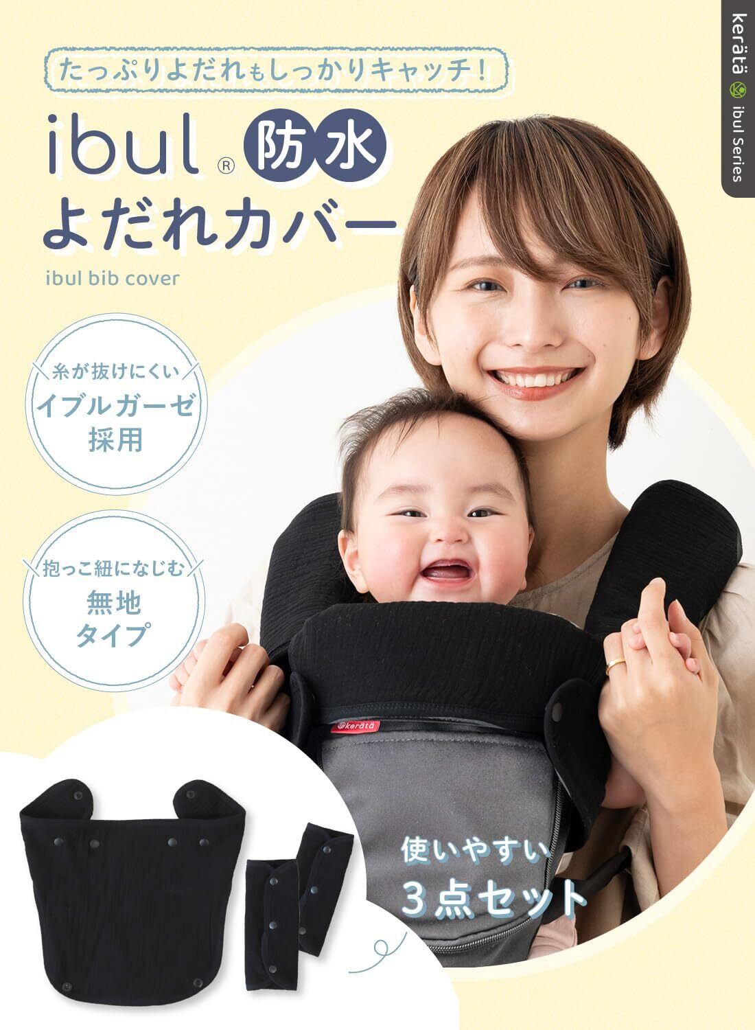 【在庫セール】(ケラッタ) イブル 防水よだれカバー 抱っこ紐 胸当て付き3点セット 糸がほつれにくい 綿100% ベビーカー チャイルドシート (a. ブラック)