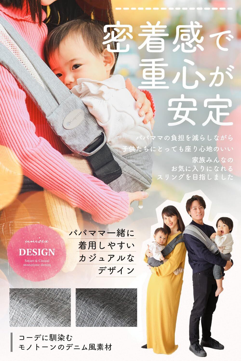 【滑り止め加工付き】 ベビースリング のパッド部分には細かいグリップつぶを敷き詰めまています これにより、ピタっとキャッチして、おしりがずれる心配もなくなります。